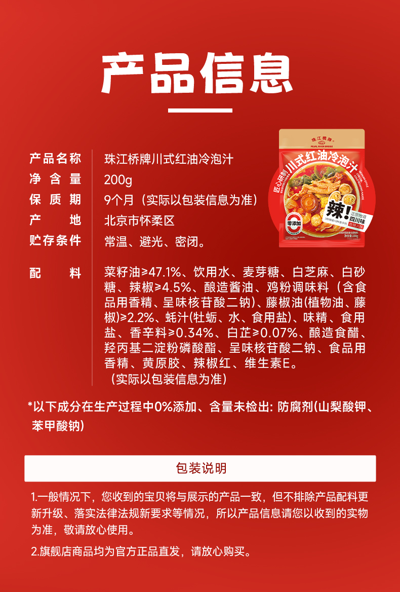【新品】珠江桥牌 川式红油冷泡汁200gx1袋