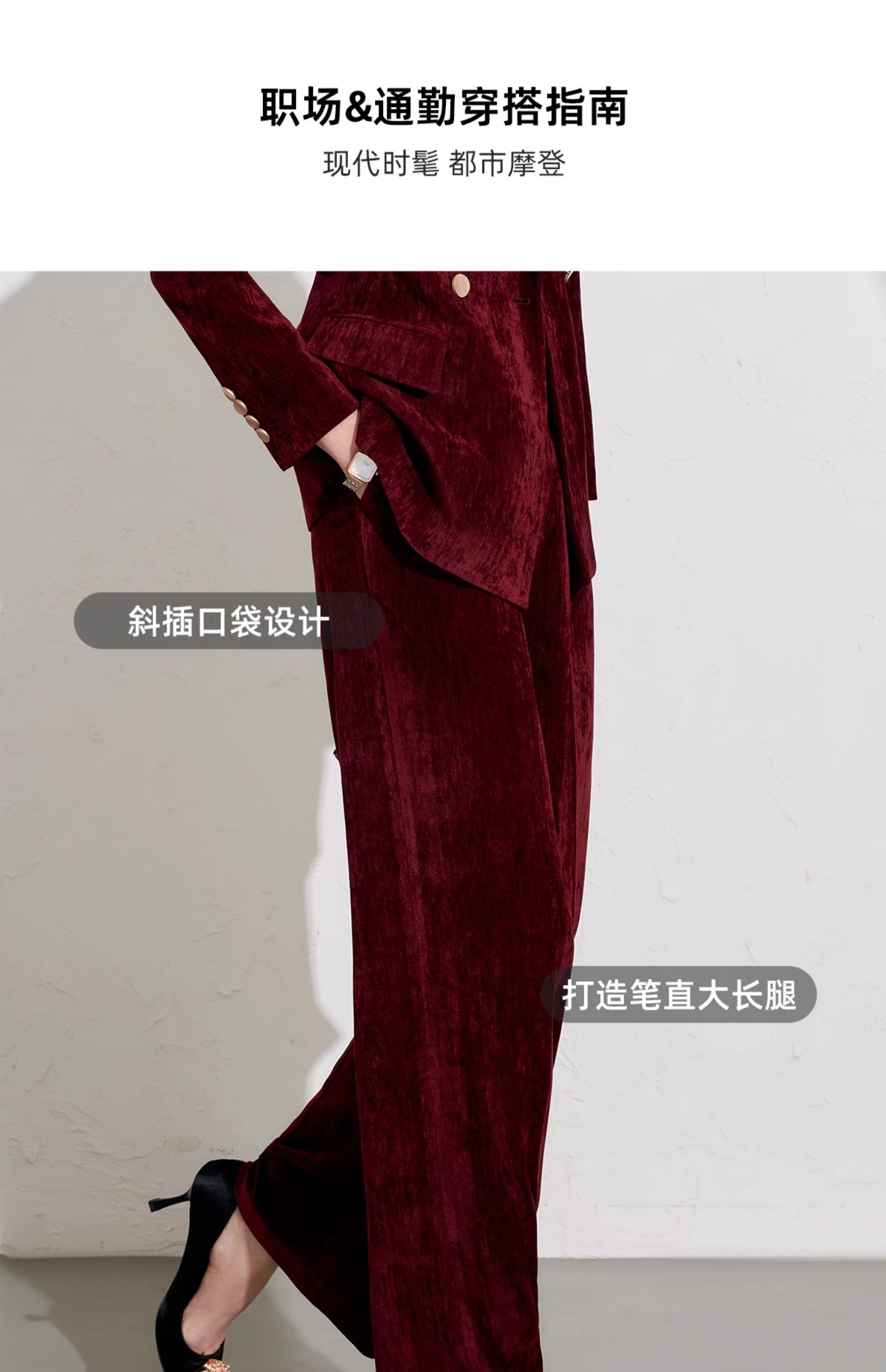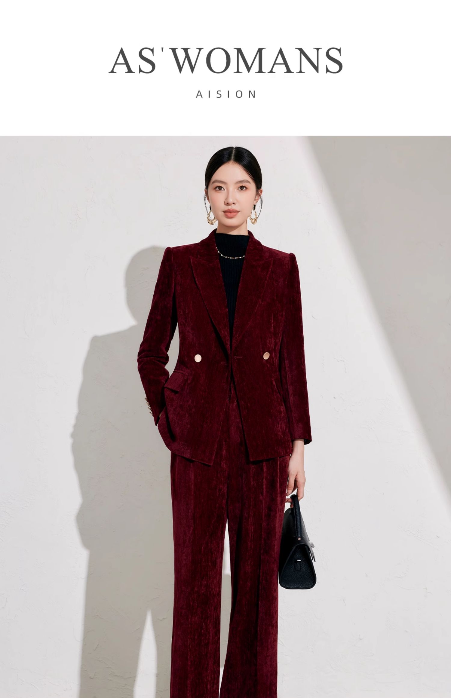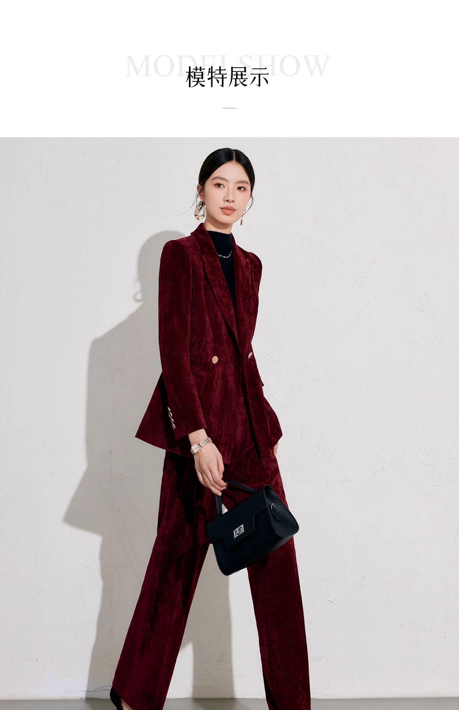 IWY/高端酒红色丝绒西装套装女公司年会主持正装气质上镜职业装1024CP038