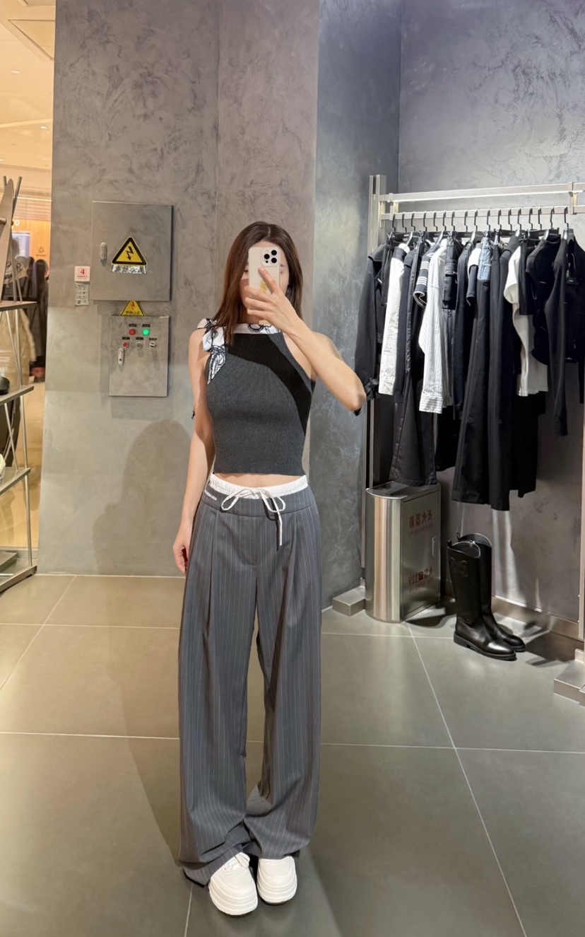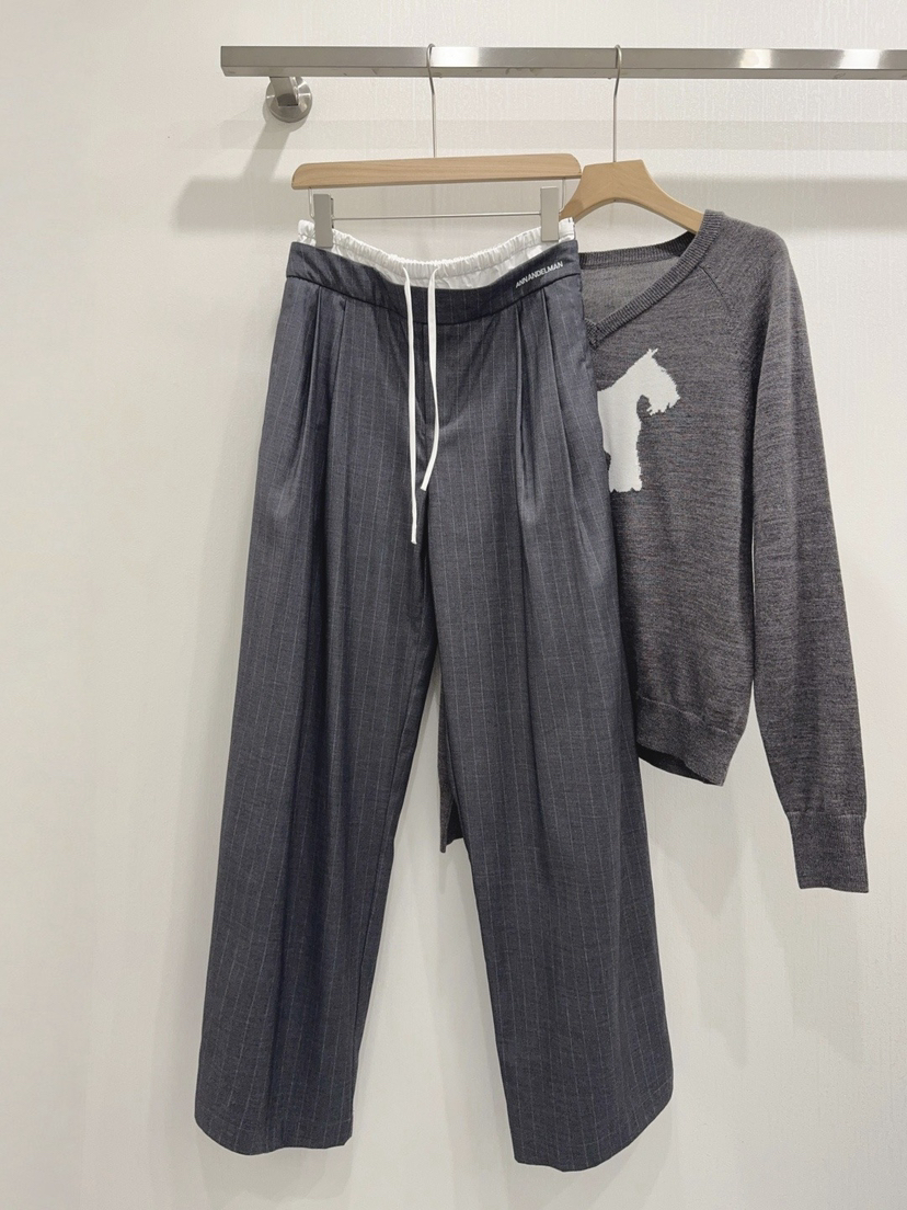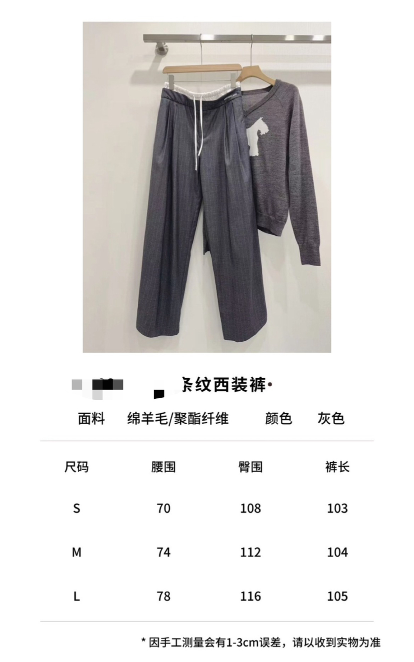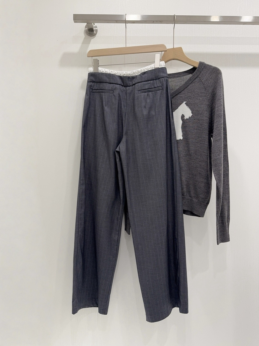 328-3 王心凌同款 ann女士条纹 阔腿 西装裤 潇洒恣意 亲肤垂坠 腰围弹力