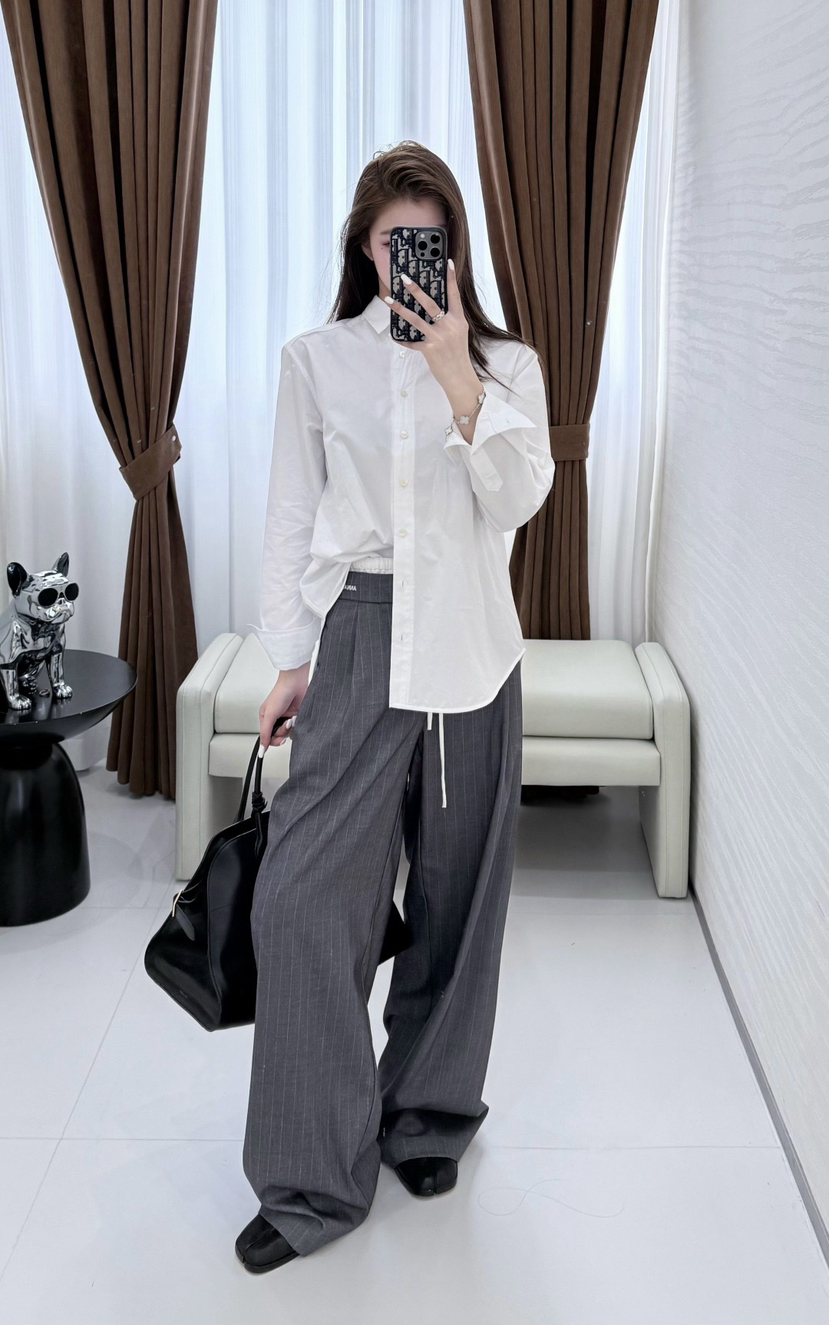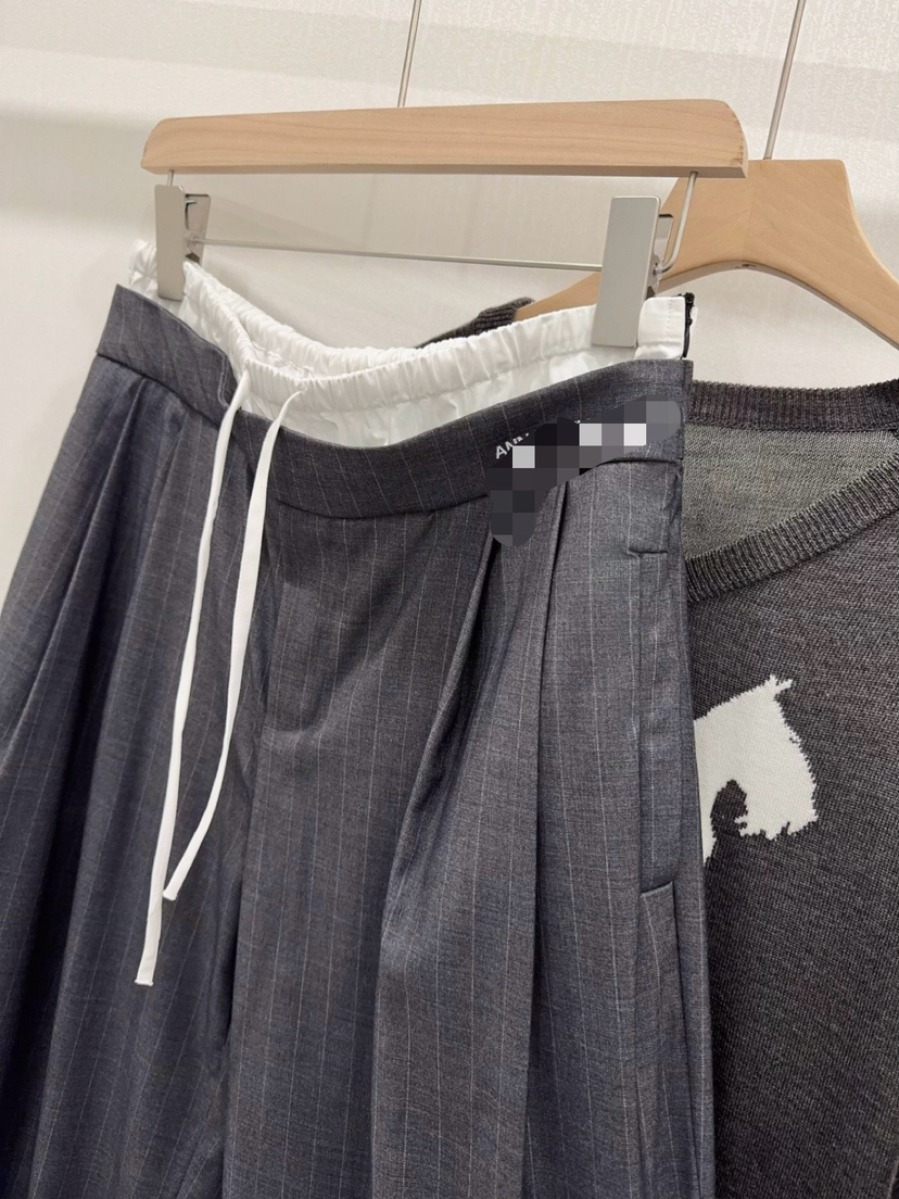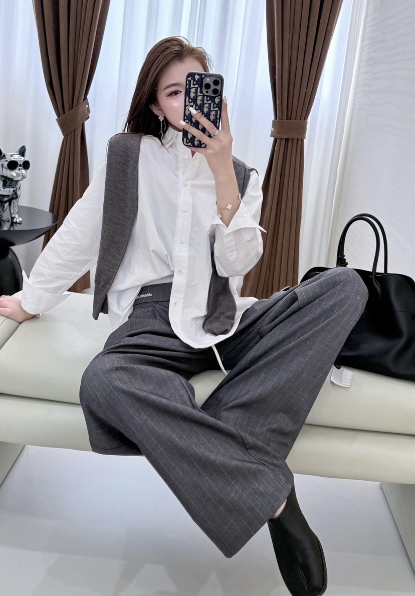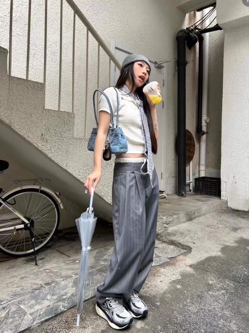 328-3 王心凌同款 ann女士条纹 阔腿 西装裤 潇洒恣意 亲肤垂坠 腰围弹力