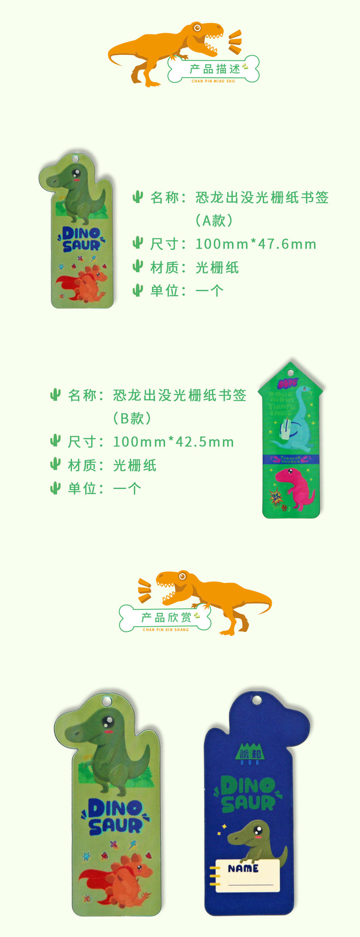 恐龙光栅纸书签