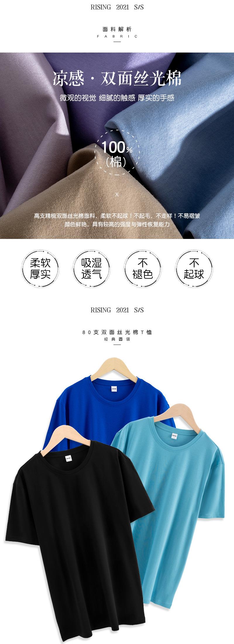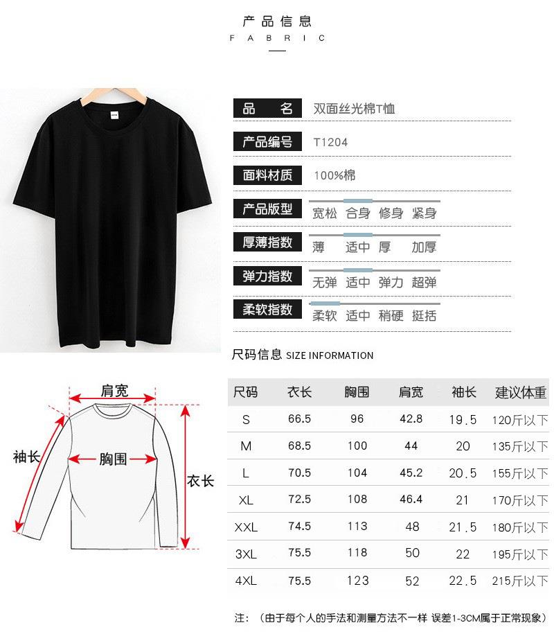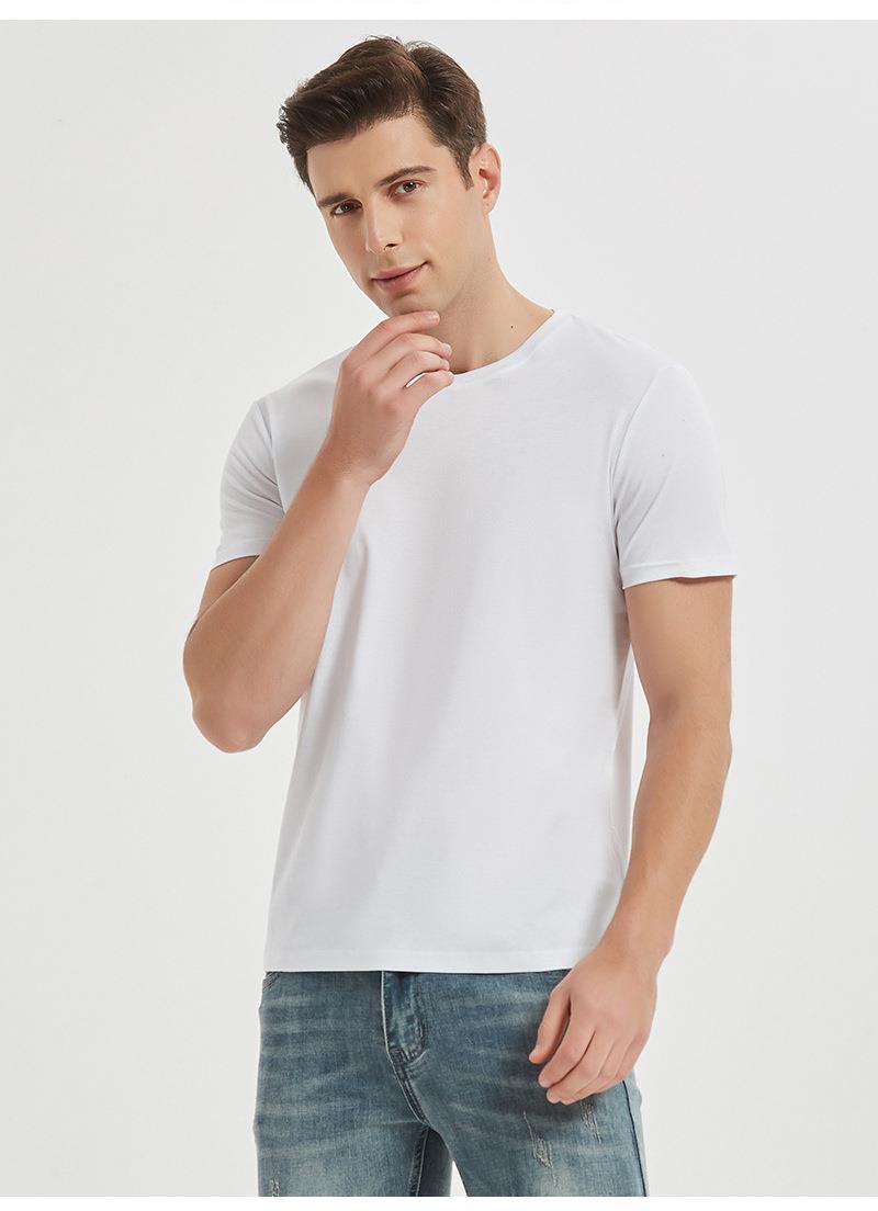 新款80支双面丝光棉男式t恤 白色新疆棉短袖t恤男夏休闲圆领t恤