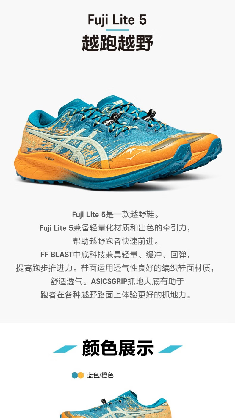ASICS亚瑟士 Fuji Lite 5 男女款越野回弹透气抓地缓震跑步运动鞋