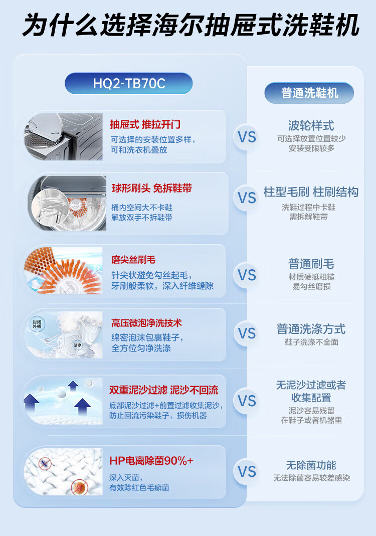 【海尔云溪洗鞋机】TB70抽屉式全自动 刷鞋可嵌入搭配洗烘一体洗衣机