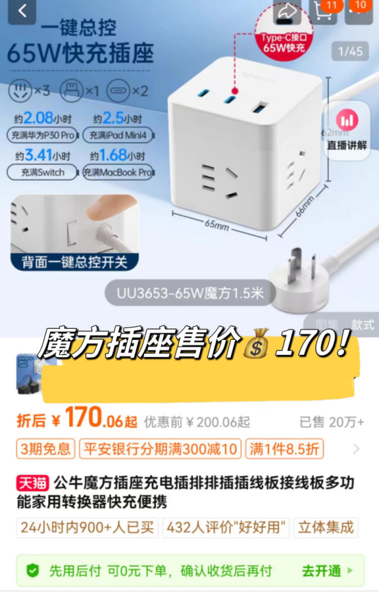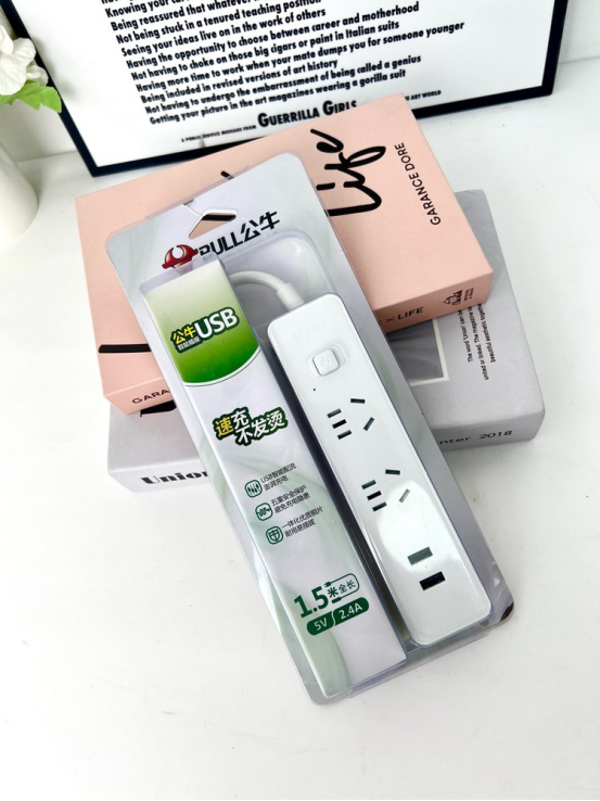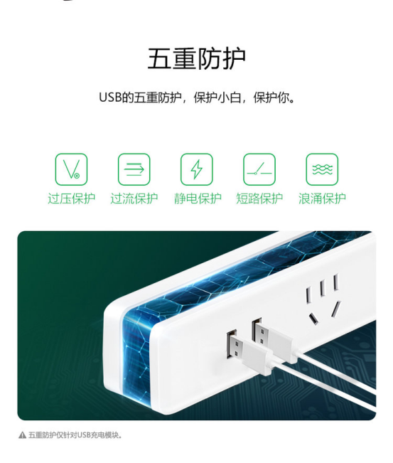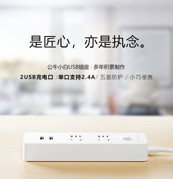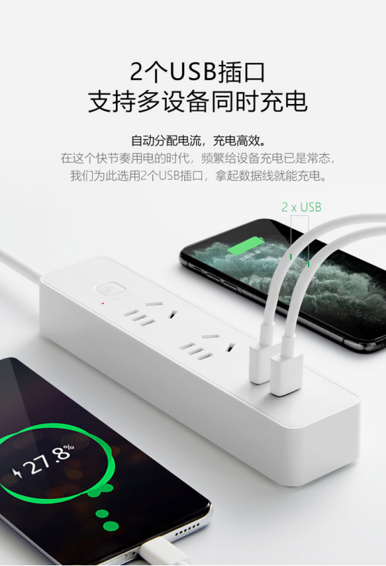我们插座功真的强大! 解决了我多个头插挤在͏ 一的起痛点❌ 有2个USB口的设计很贴,心不需要很多换转器,手机和机耳同时充电💟 好的计设就是给用户解决问题的同时又高提了生品活质!