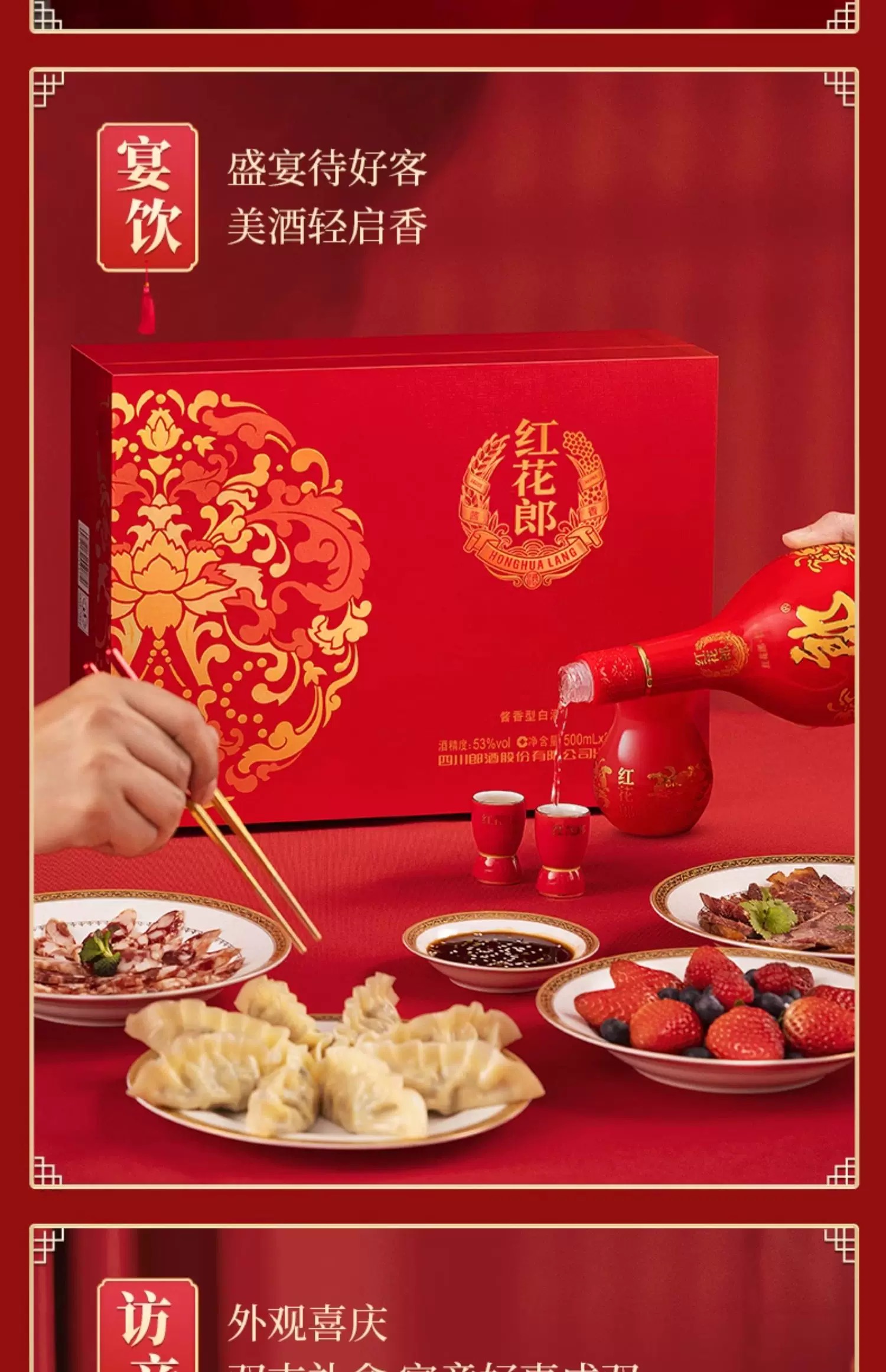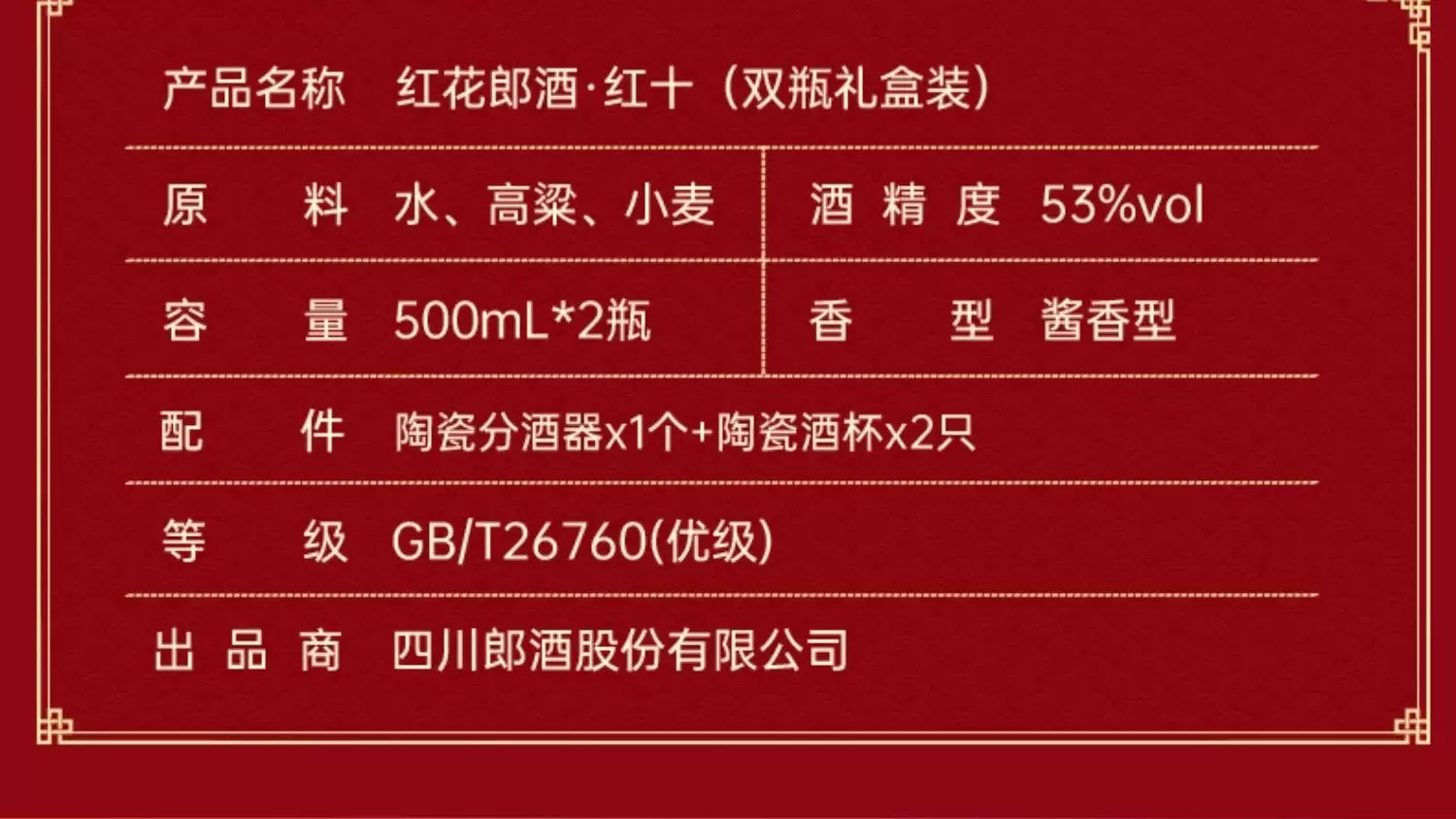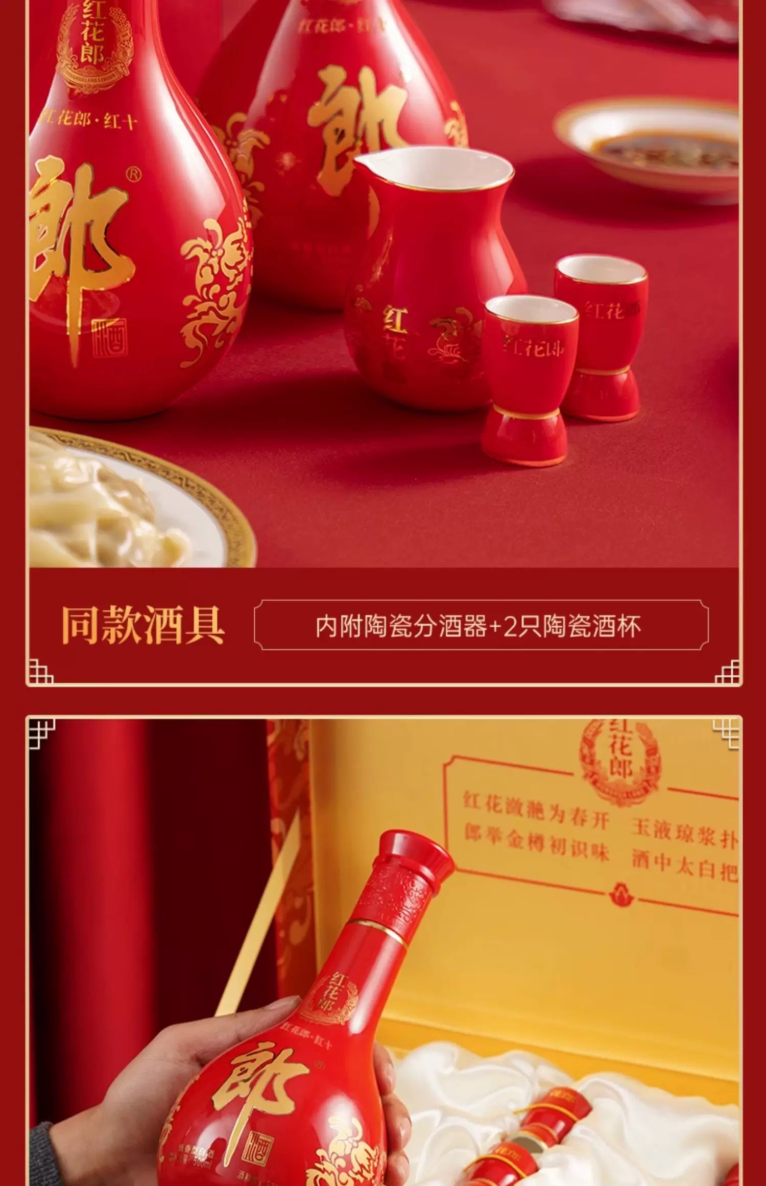 郎酒 红花郎 红十双瓶礼盒 53度酱香型白酒 500ml*2