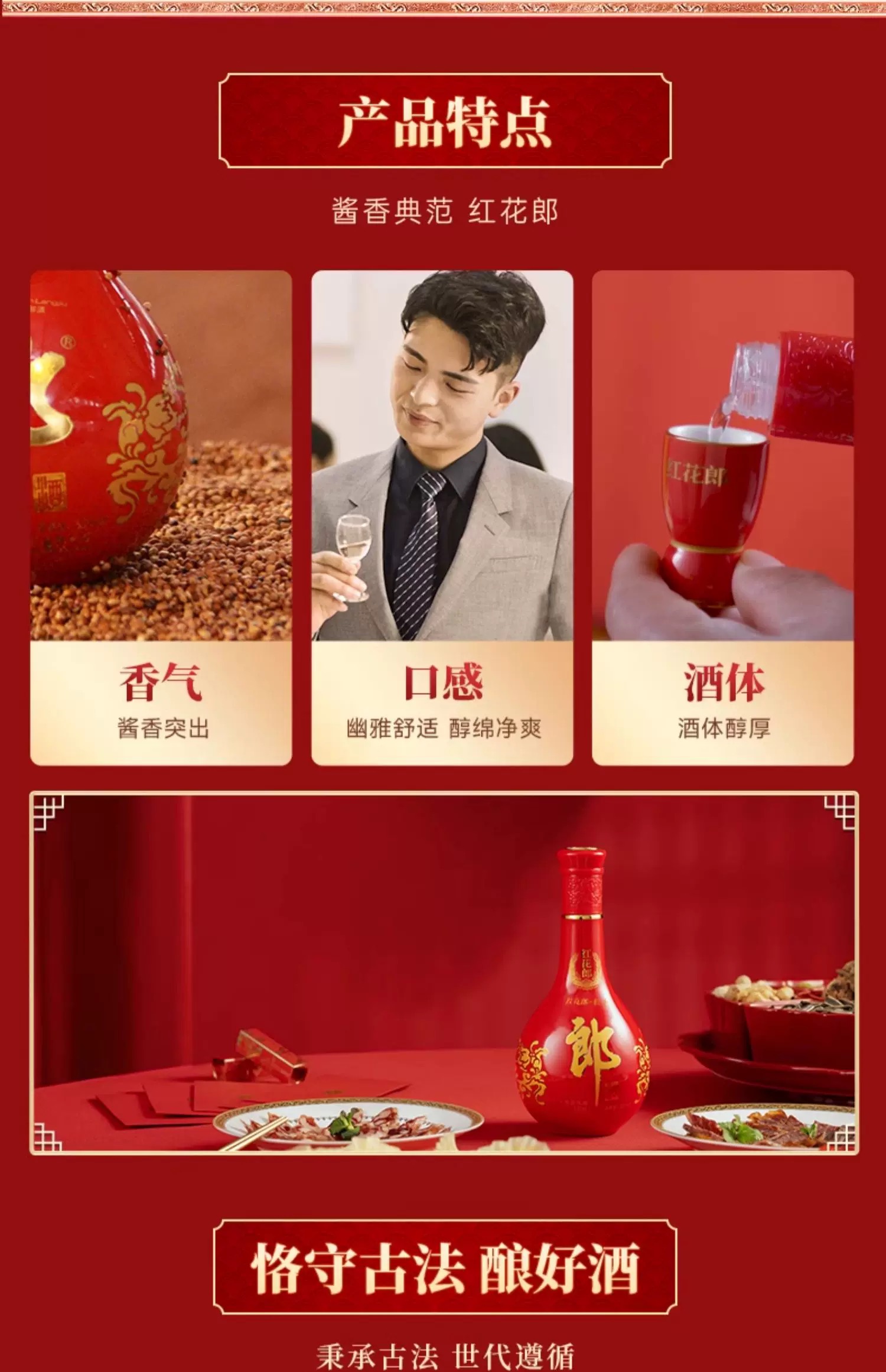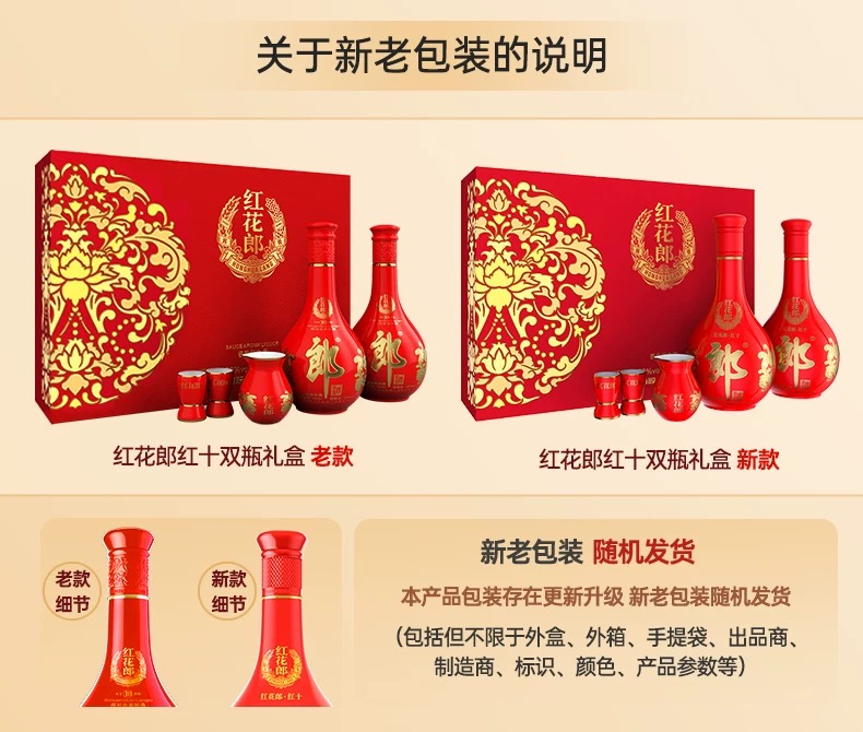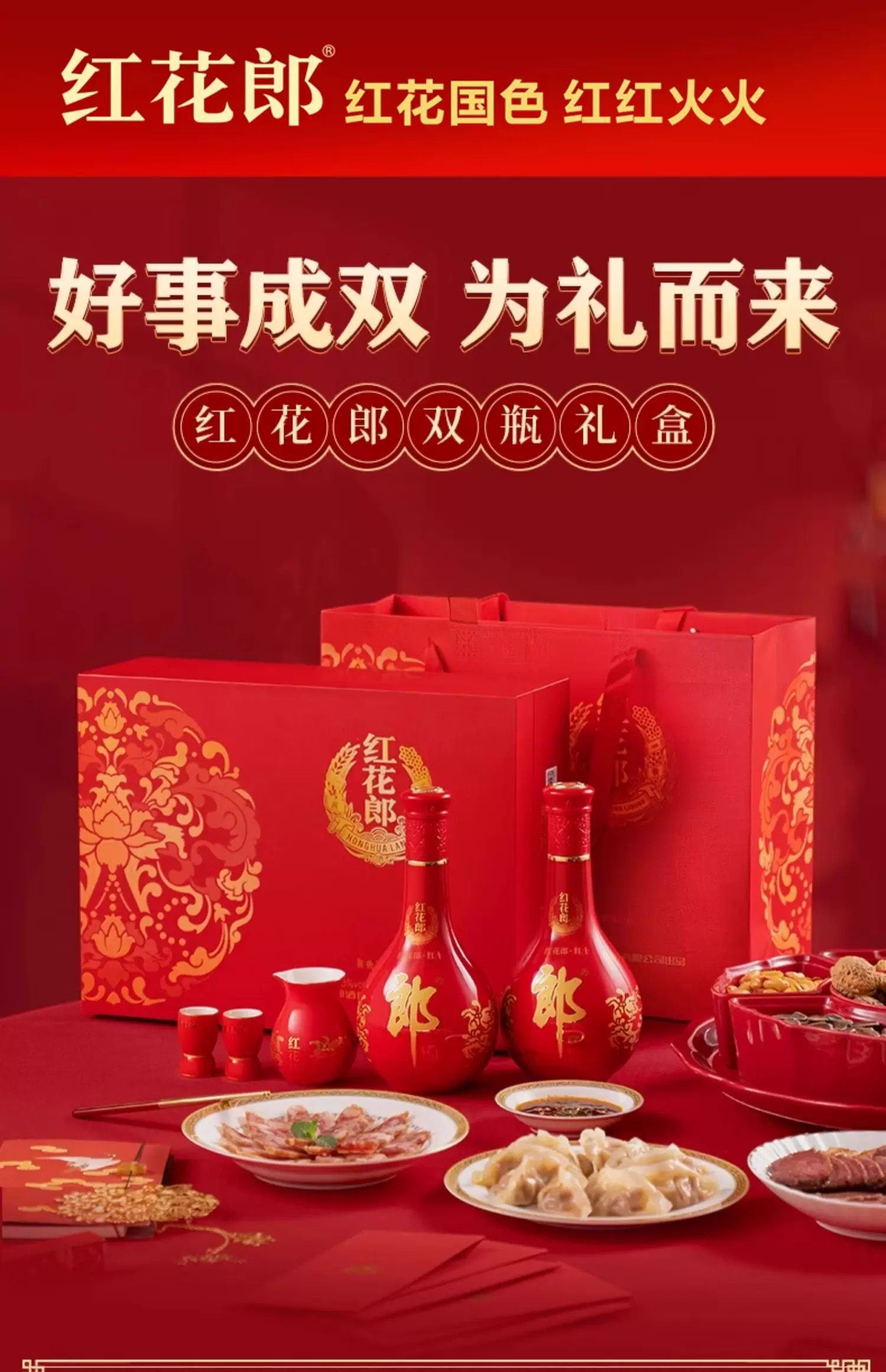 郎酒 红花郎 红十双瓶礼盒 53度酱香型白酒 500ml*2