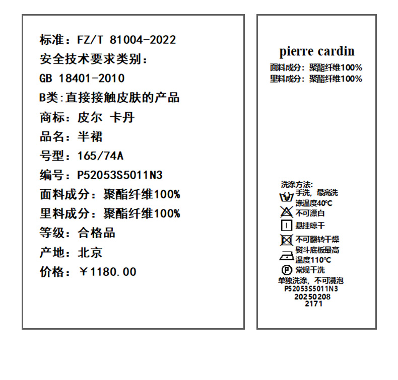 皮尔卡丹女装半身裙P52053S5011N3