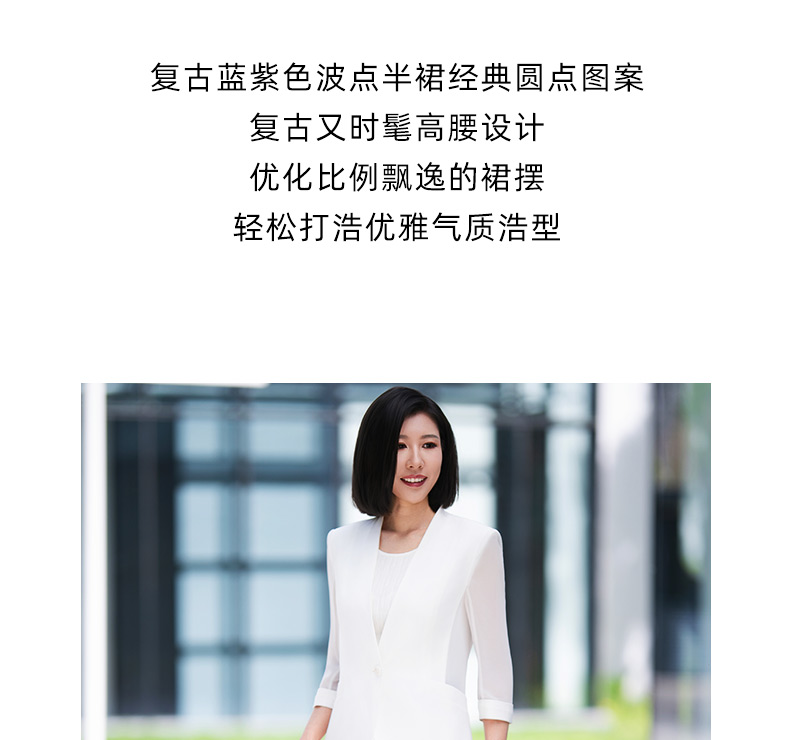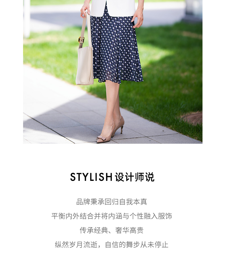 成熟、稳重、高贵典雅、大方得体 融合东方文化的含蓄和法国的浪漫 将创意的艺术性与消费需求相结合 为自信女性塑造高品质场合服装