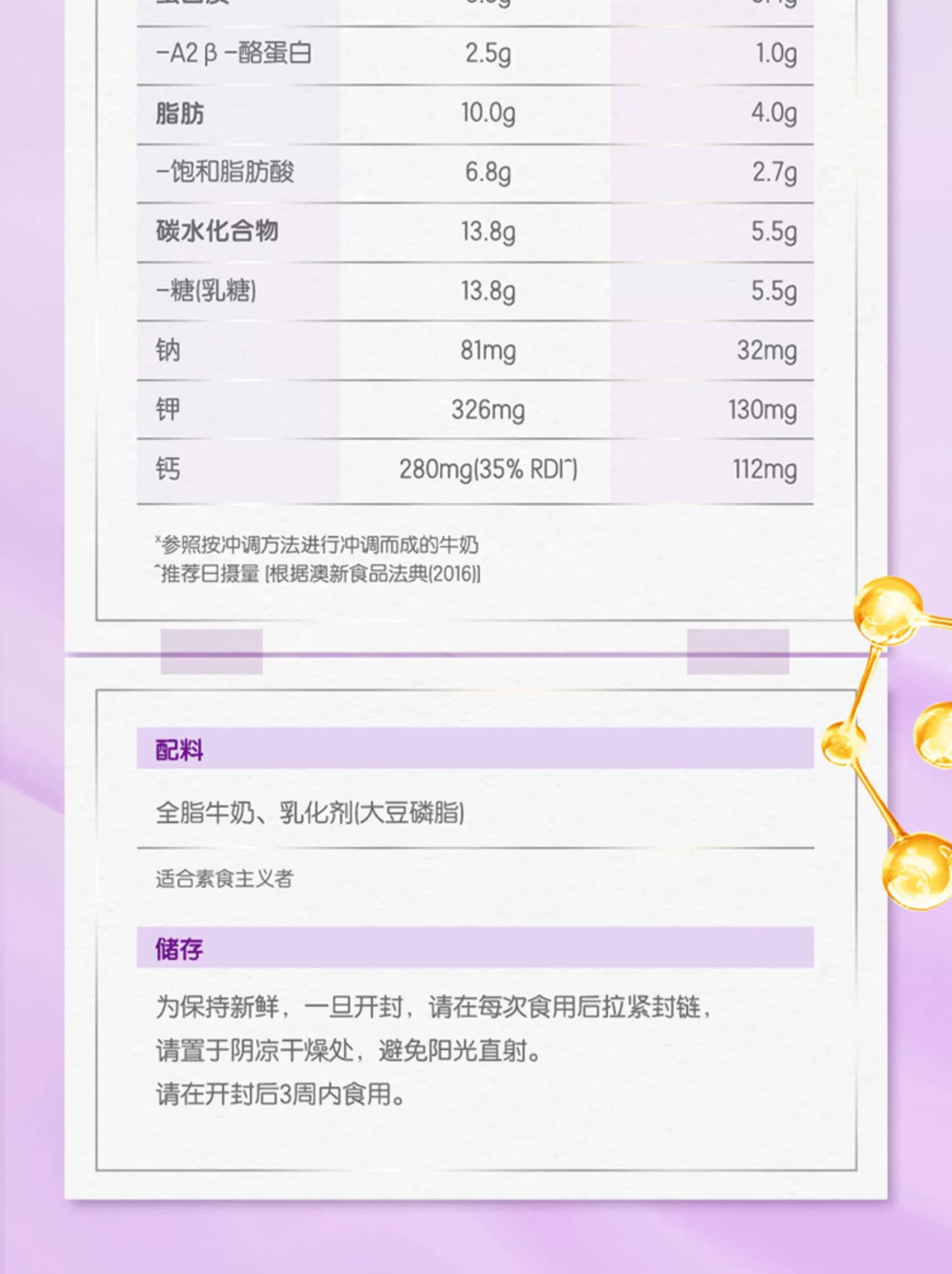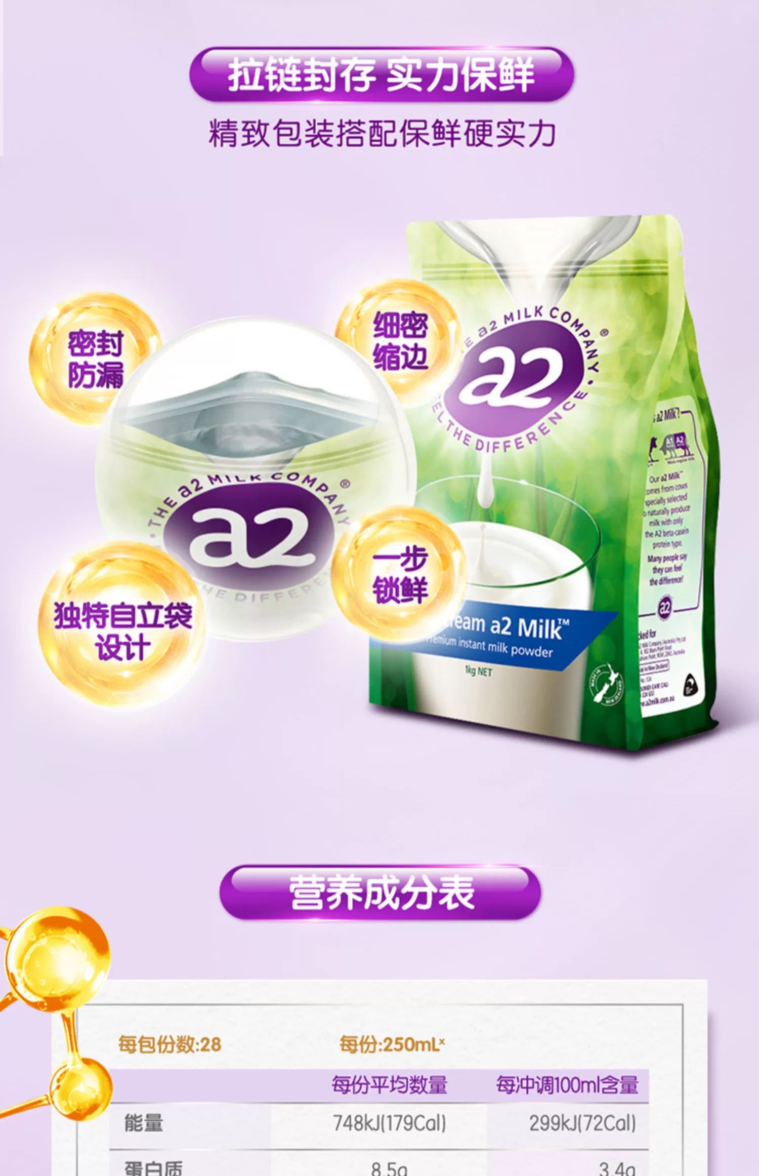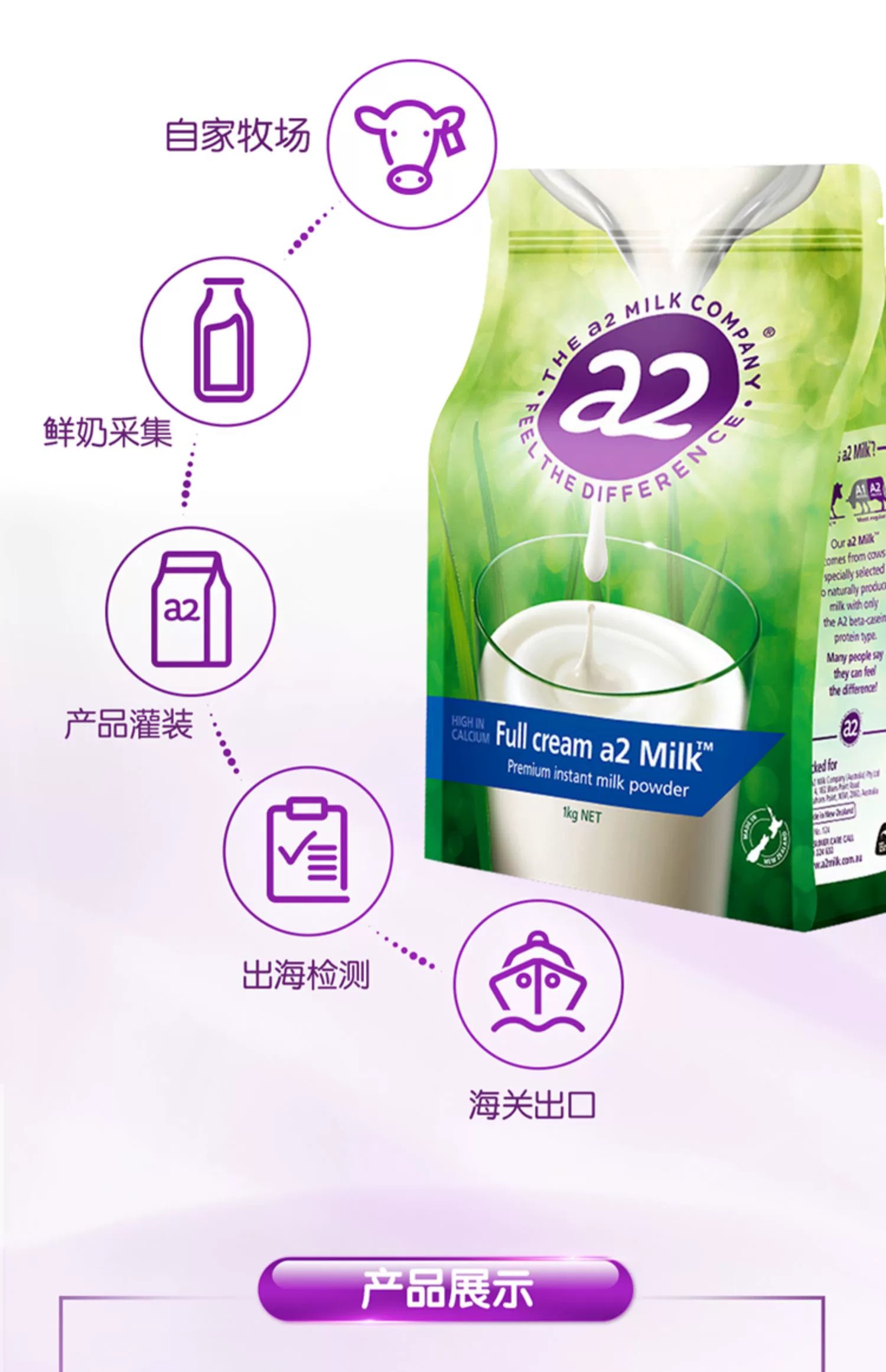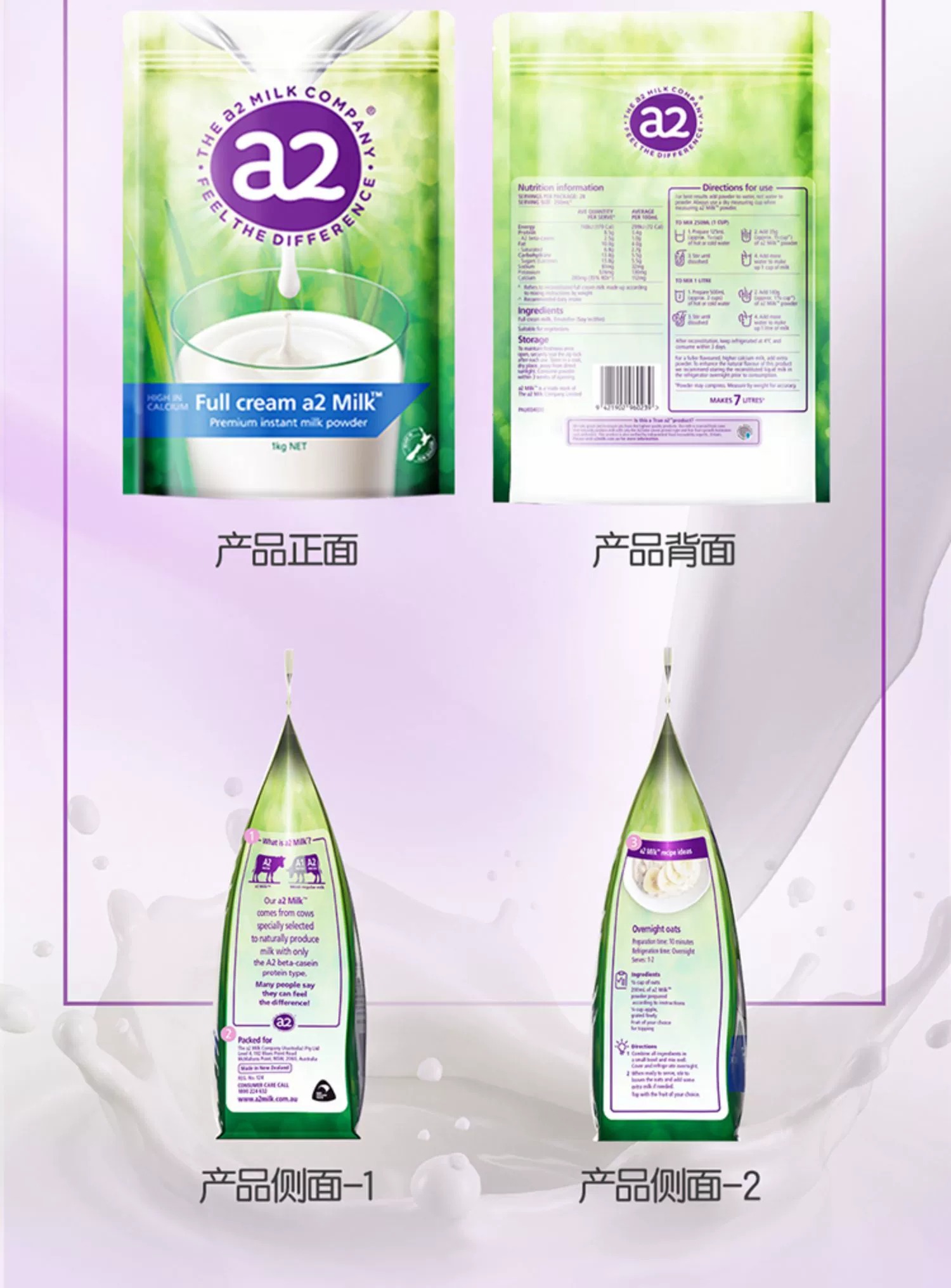 【中欧班列精选】澳洲 a2袋装高钙全脂高蛋白儿童学生成人奶粉1kg HNMG
