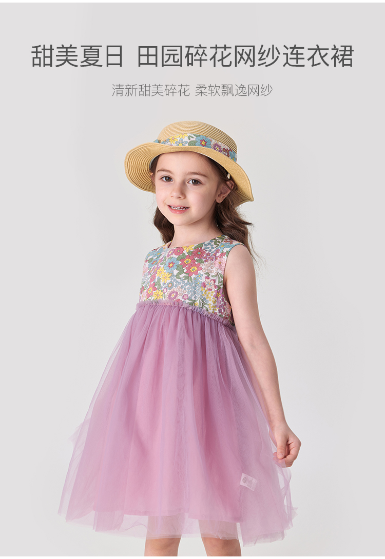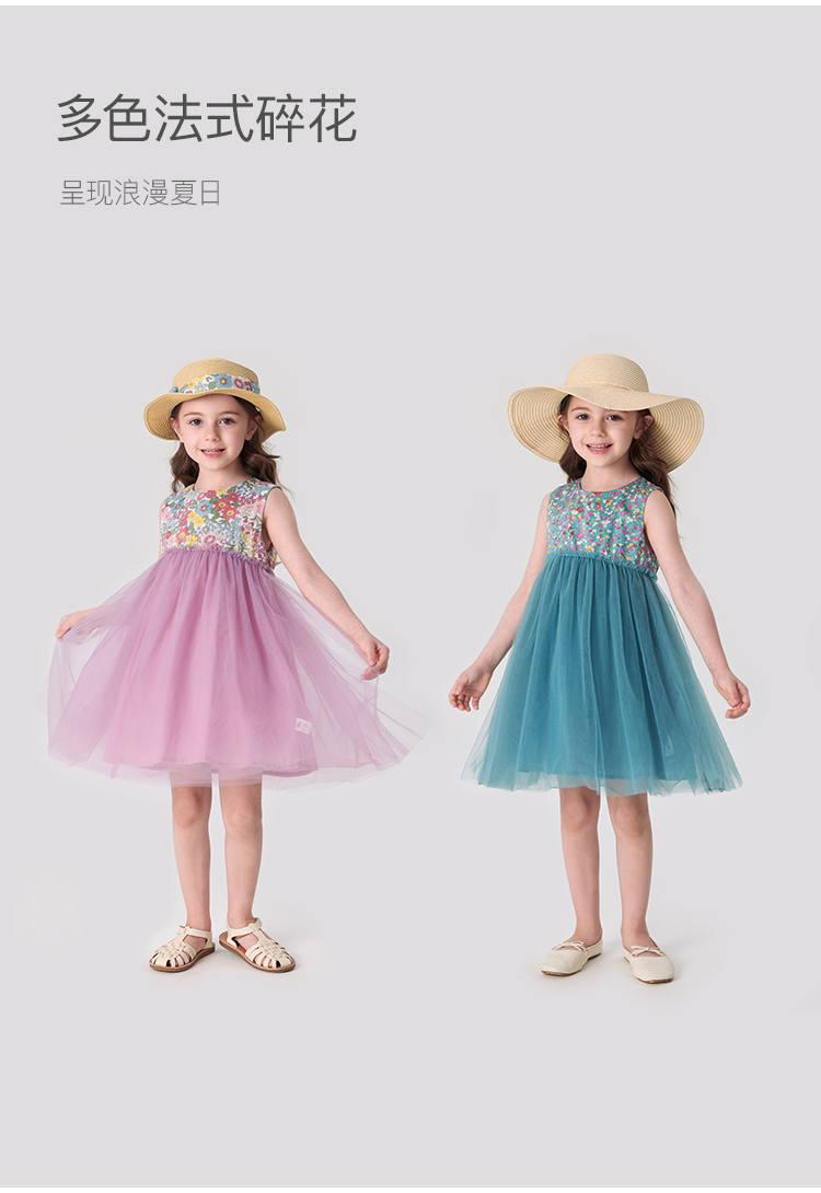 【马克珍妮 芦芙】夏装新款 女童清新碎花轻盈网纱裙230002