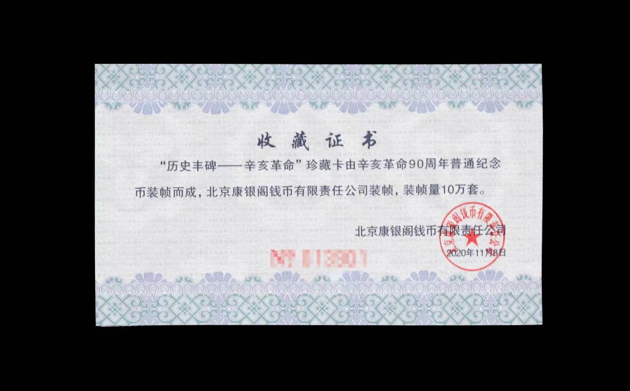 2021年10月10日,恰逢辛亥革命110周年纪念日,为回顾中国人民为民族独立、国家富强、人民幸福、祖国统一而不懈奋斗的艰辛历程,发扬光大辛亥革命精神,实现中华民族伟大复兴的中国梦,北京康银阁钱币有限责任公司以纪念辛亥革命为背景,围绕辛亥革命90周年普通纪念币设计并装帧了《历史丰碑﹣﹣辛亥革命》珍藏卡。