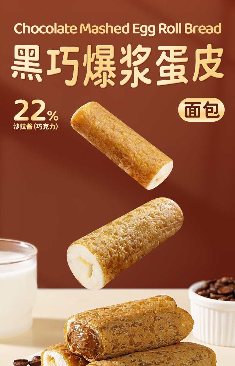 【聚划算❗黑巧爆浆蛋皮面包】甄选品质原料制作,满口爆浆,纵享丝滑,不单独添加蔗糖,好吃美味无负担,早餐代餐下午茶休闲零食L
