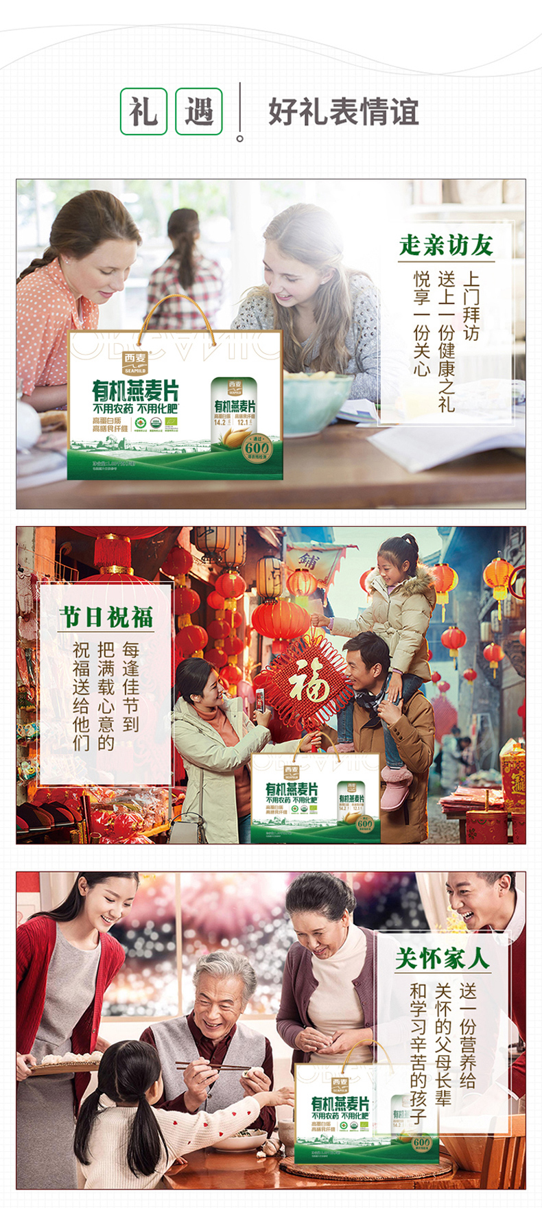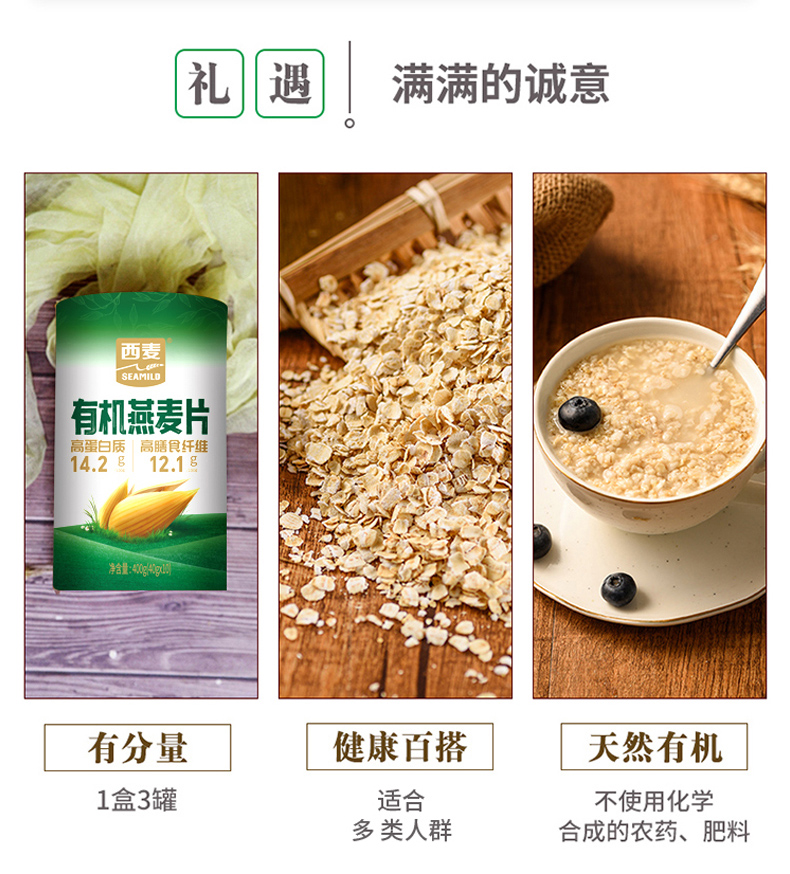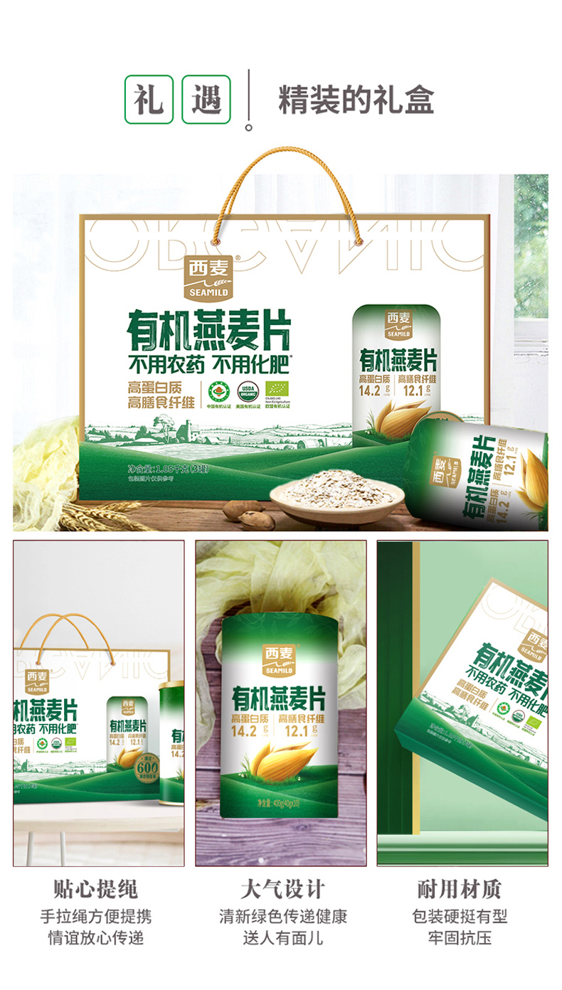有机燕麦片礼盒1.05kg内含350g*3包独立包装高纤维即食早餐家庭健康礼赠装