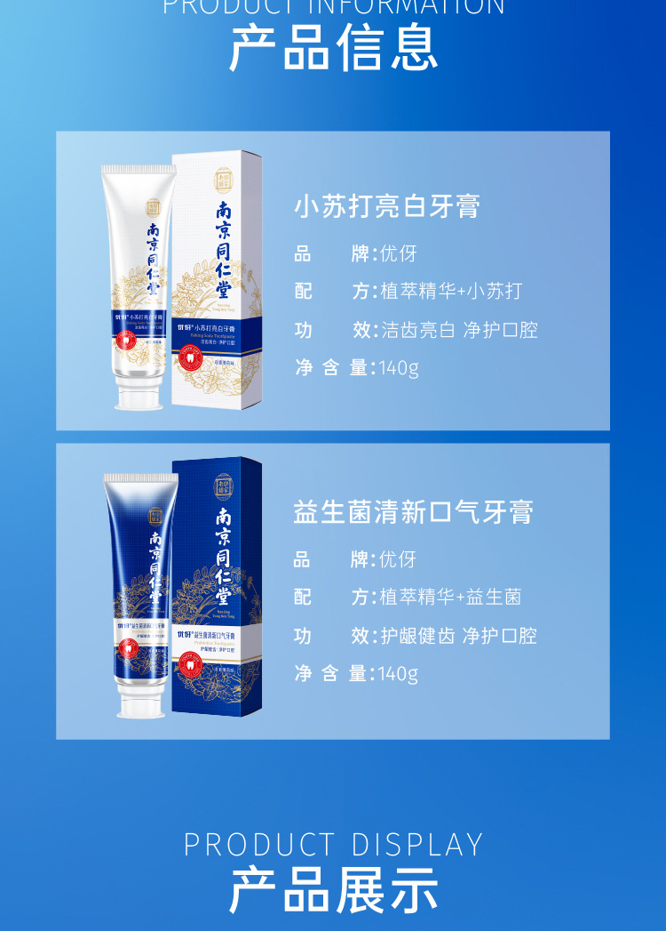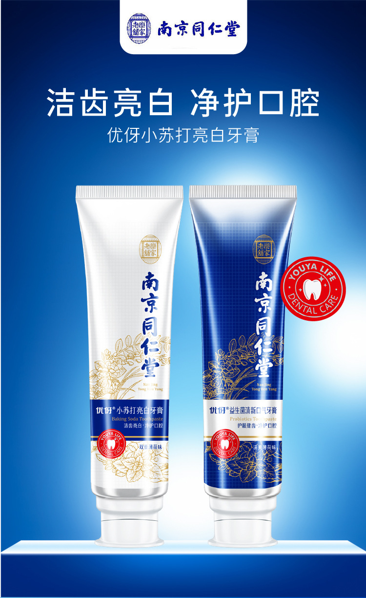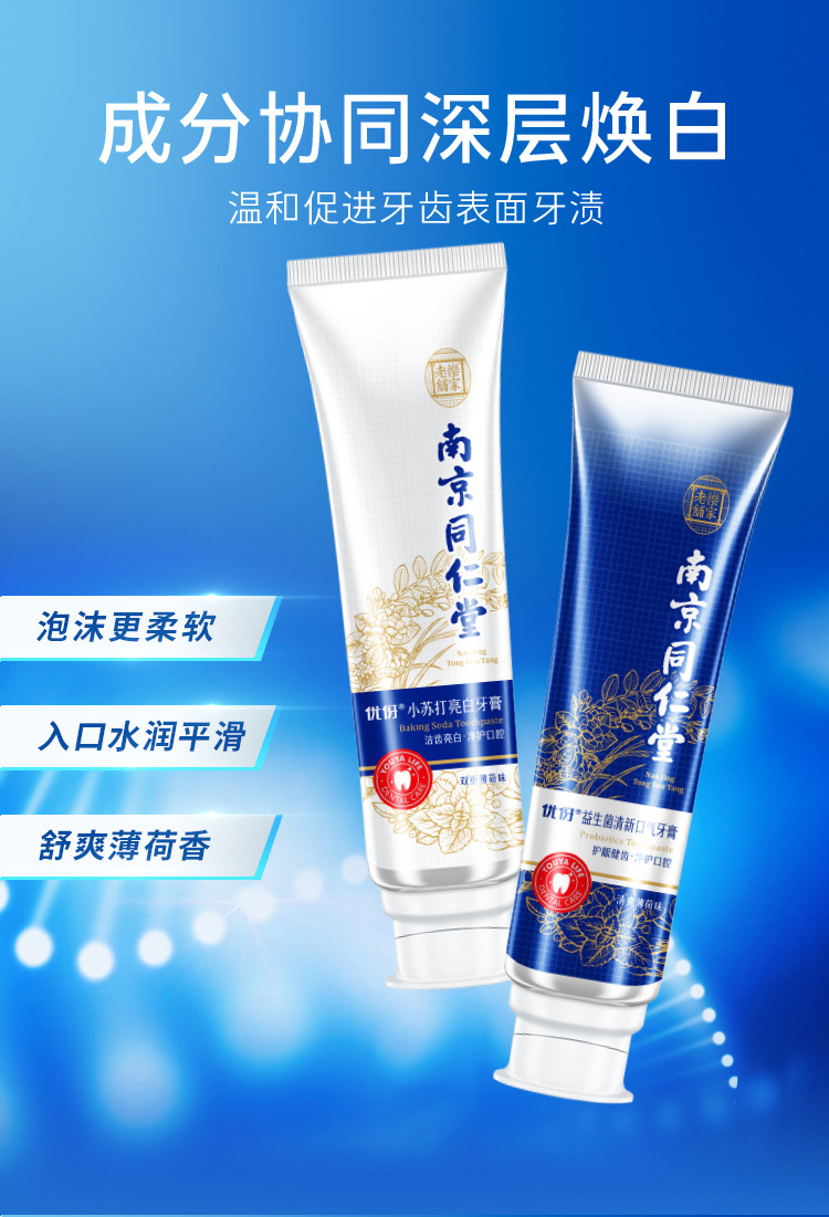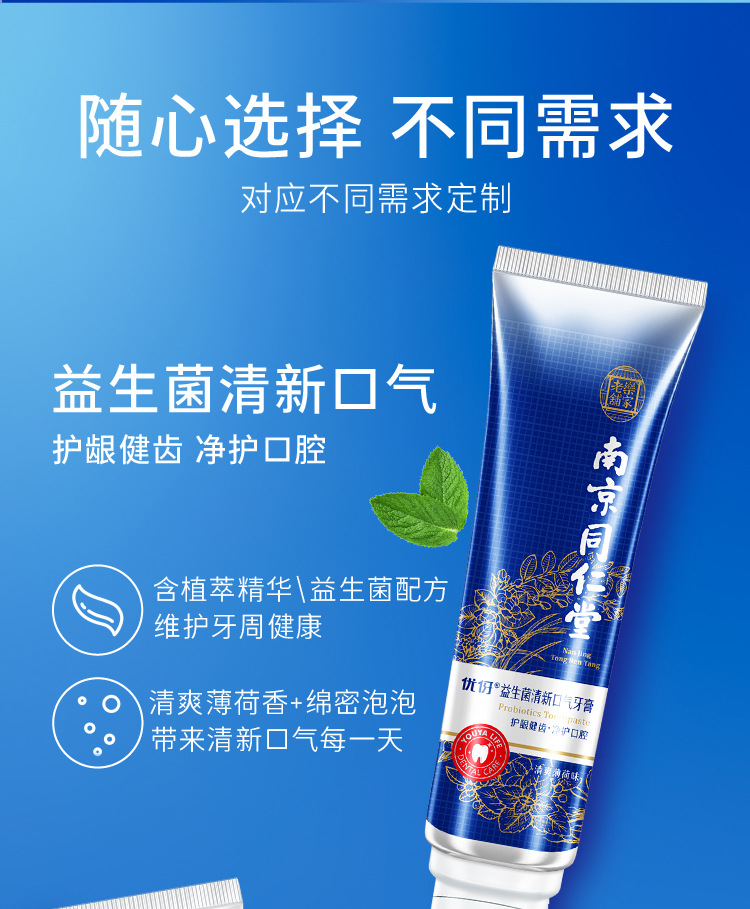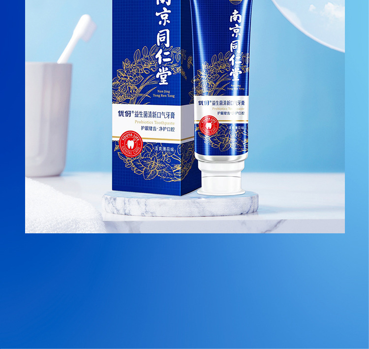 南京同仁堂 益生菌牙膏 去黄牙 去牙渍 去异味 去口臭 清新口气 口腔护理 全家无“幽”