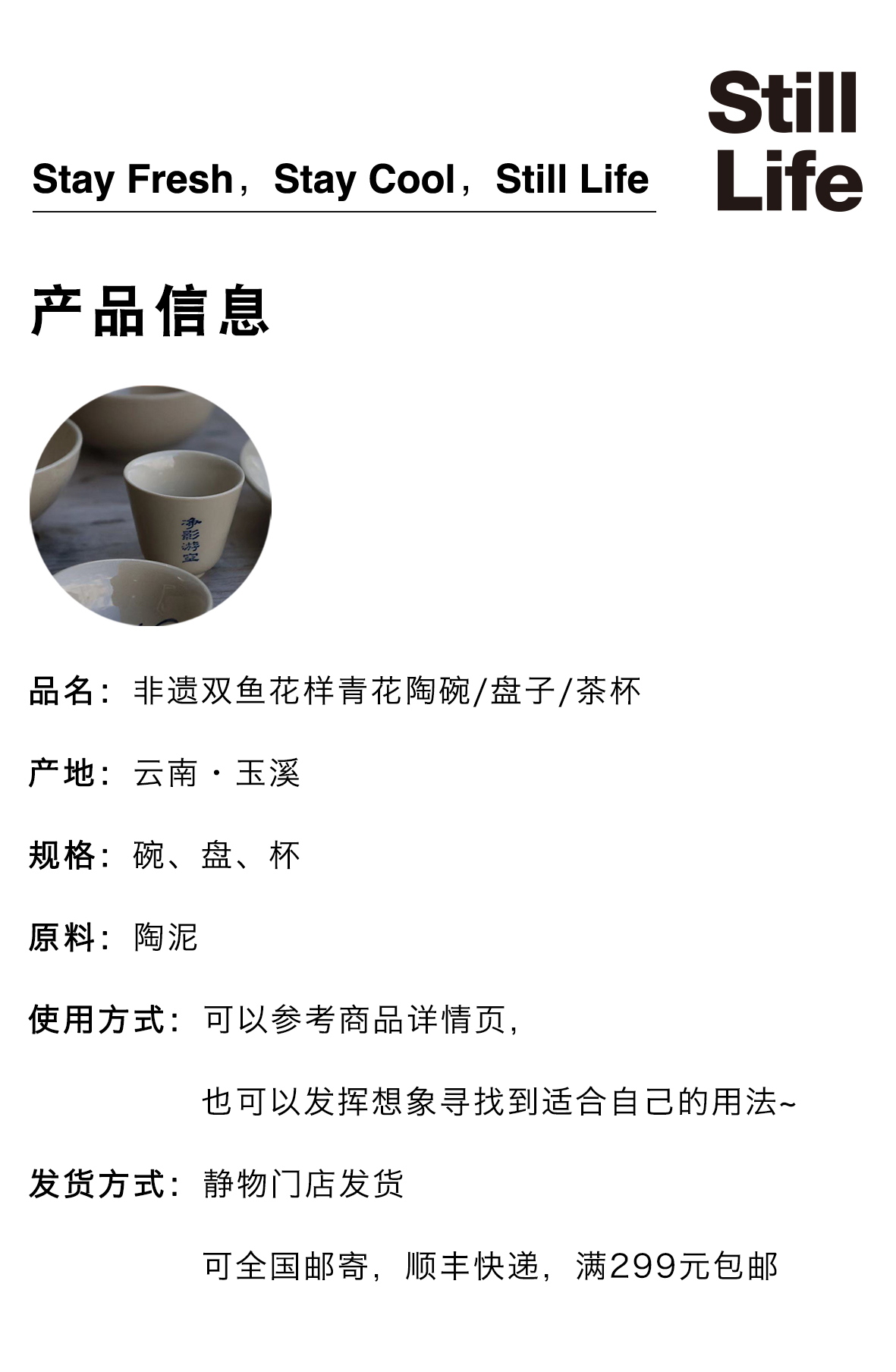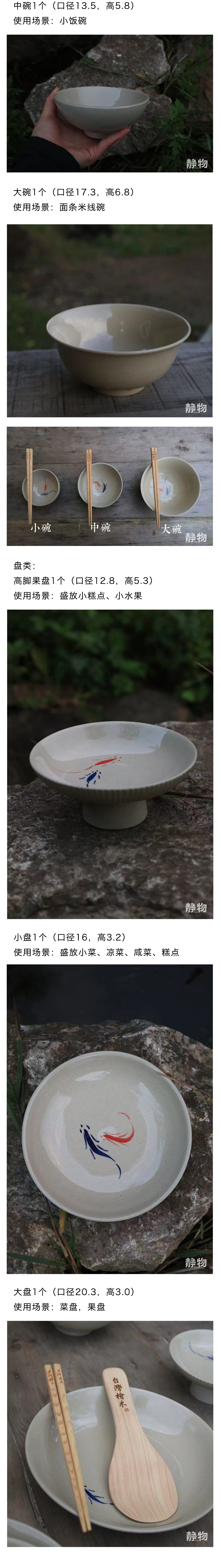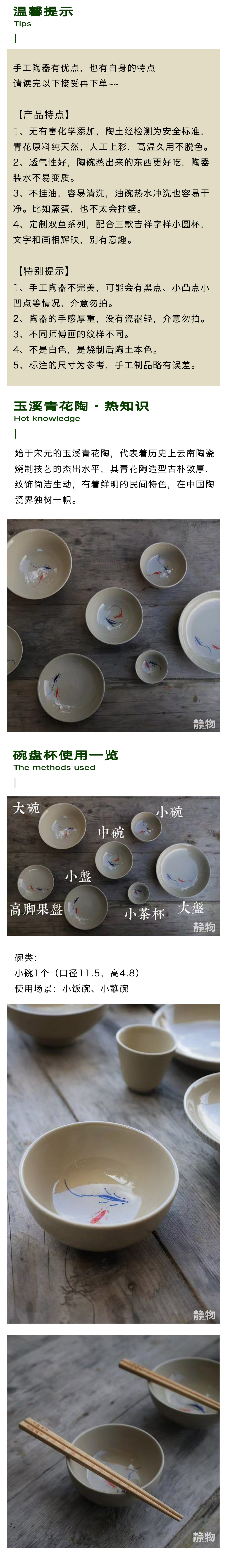 非遗双鱼画样青花陶碗/盘子/茶杯|云南