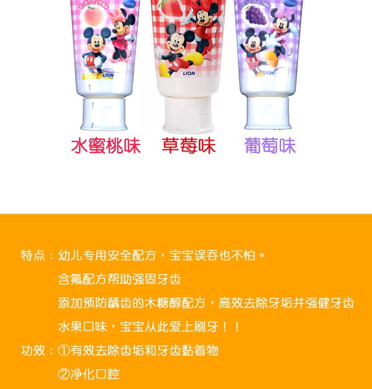 日本狮王Lion 儿童可吞咽防蛀牙膏 水蜜桃味 60gJPY带授权招加盟代理