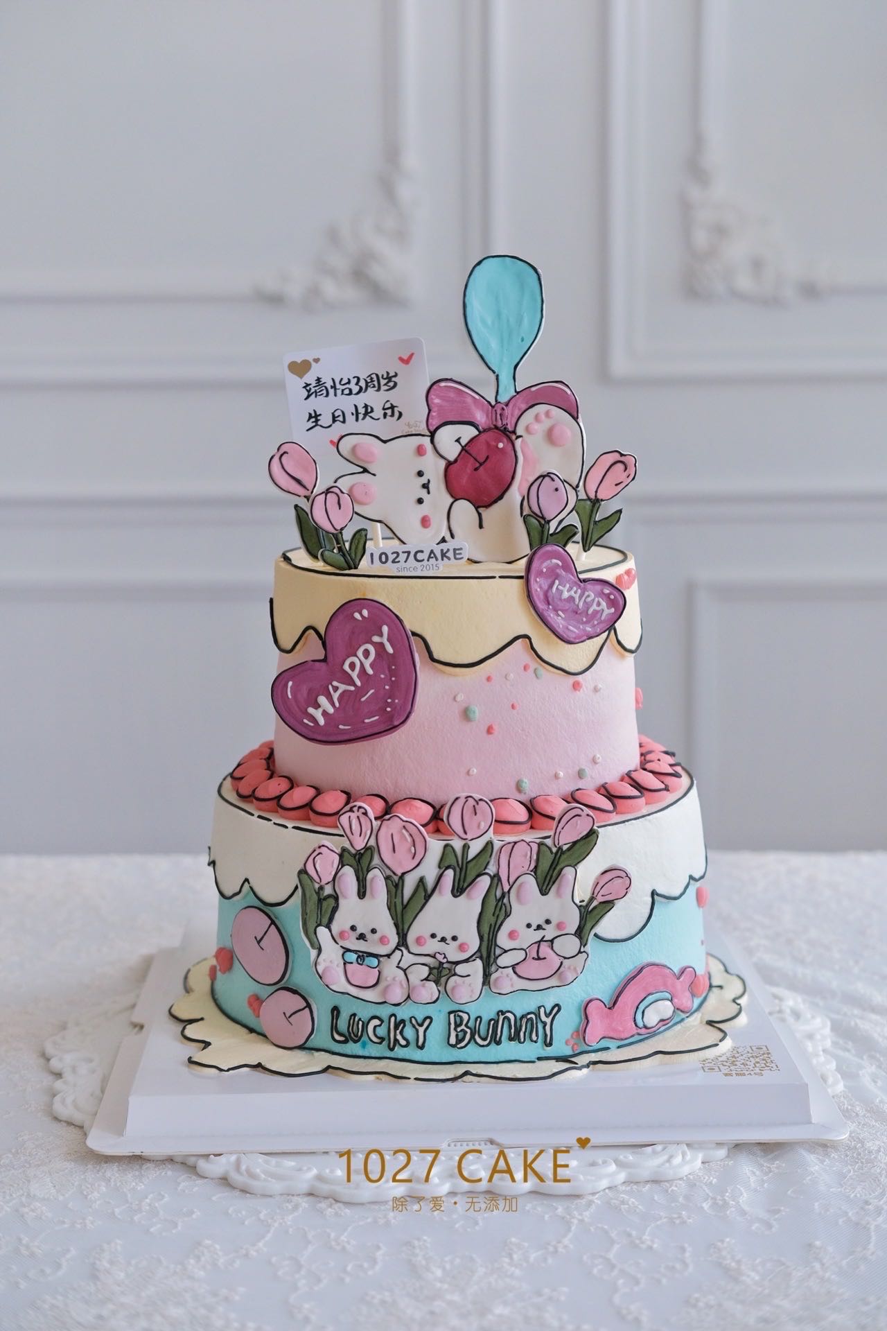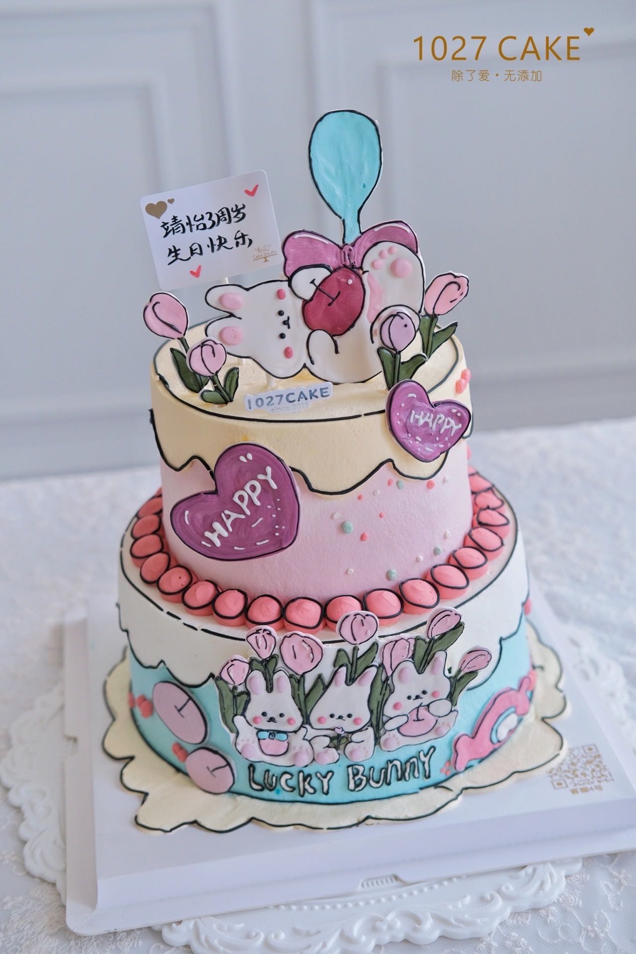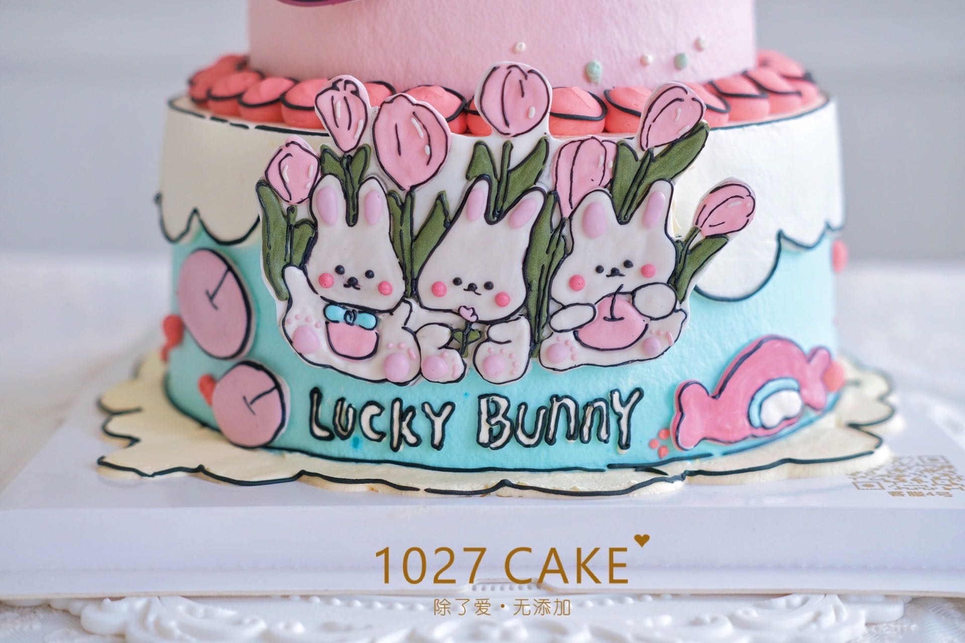 1027CAKE | 双层兔兔 芝士转印手绘 漫画风 二次元(提前2天)