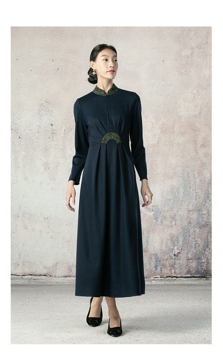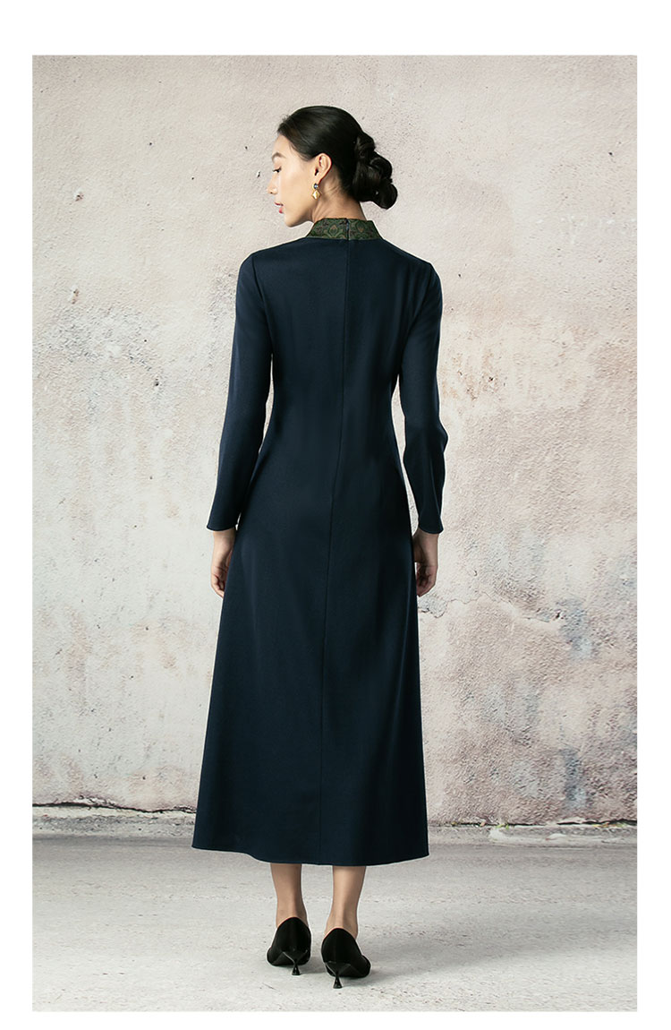 吉祥衣家新中式国风羊毛春秋季款气质优雅轻奢女装林下幽姿连衣裙