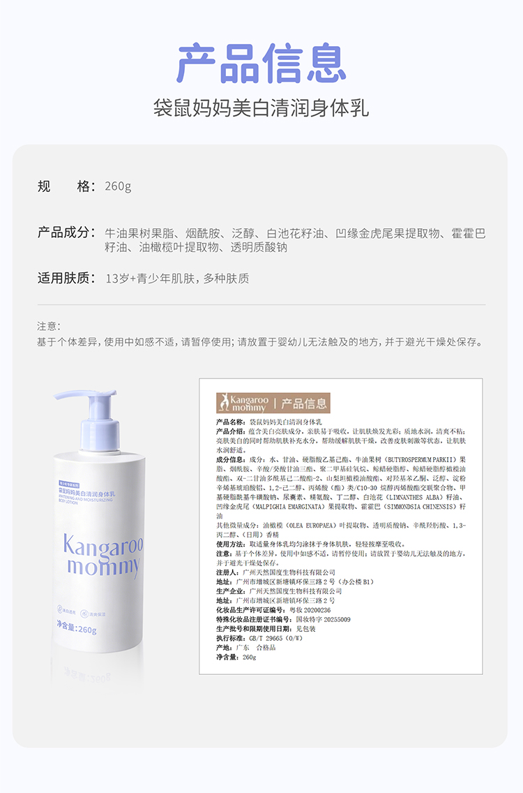 【青少年美白身体乳】4周全身美白 养出发光肌 润而不腻 清爽无负担 美白清润身体乳260g