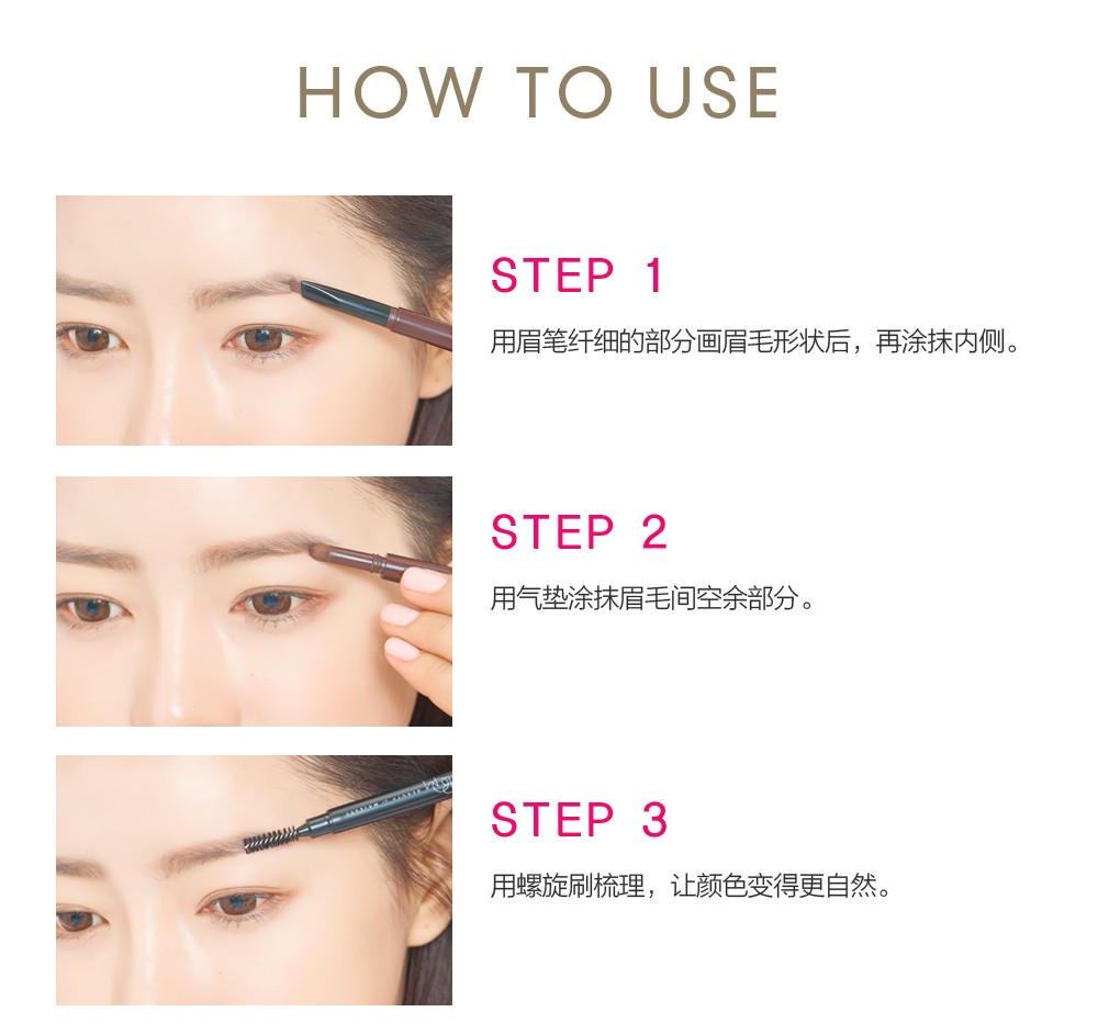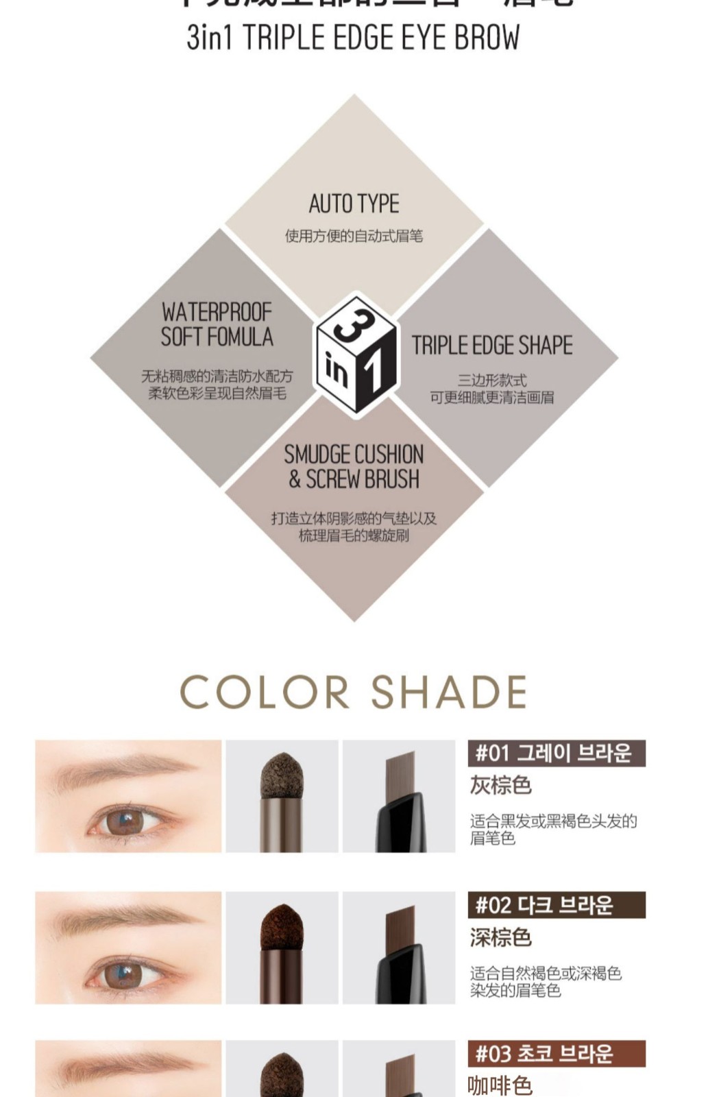 BOM碧波曼奇妙三合一眉笔 #01灰棕色 #02深棕色 #03咖啡色