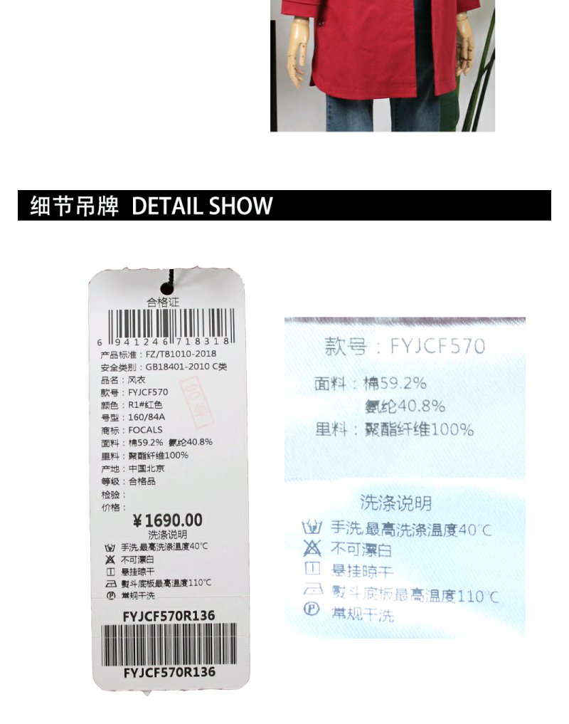 FOCALS福柯斯春秋新款宽松休闲单排扣中长款外套风衣FYJCF570R1