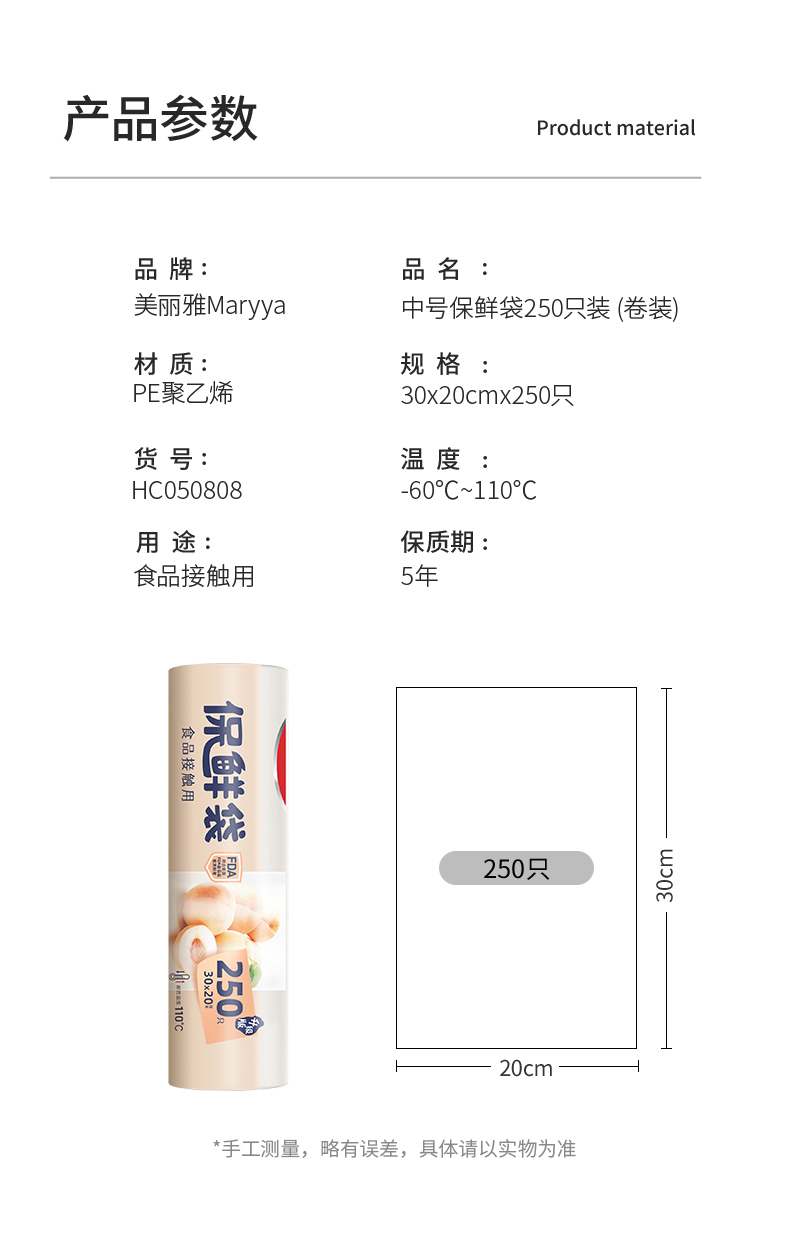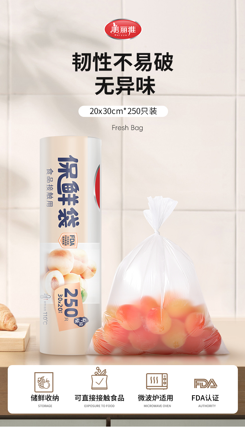 【批发】美丽雅250只装中号保鲜袋(卷装)