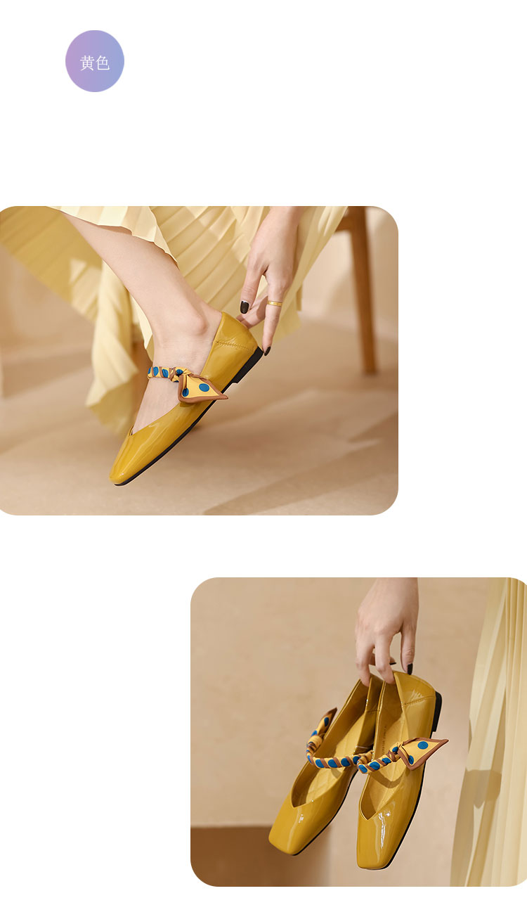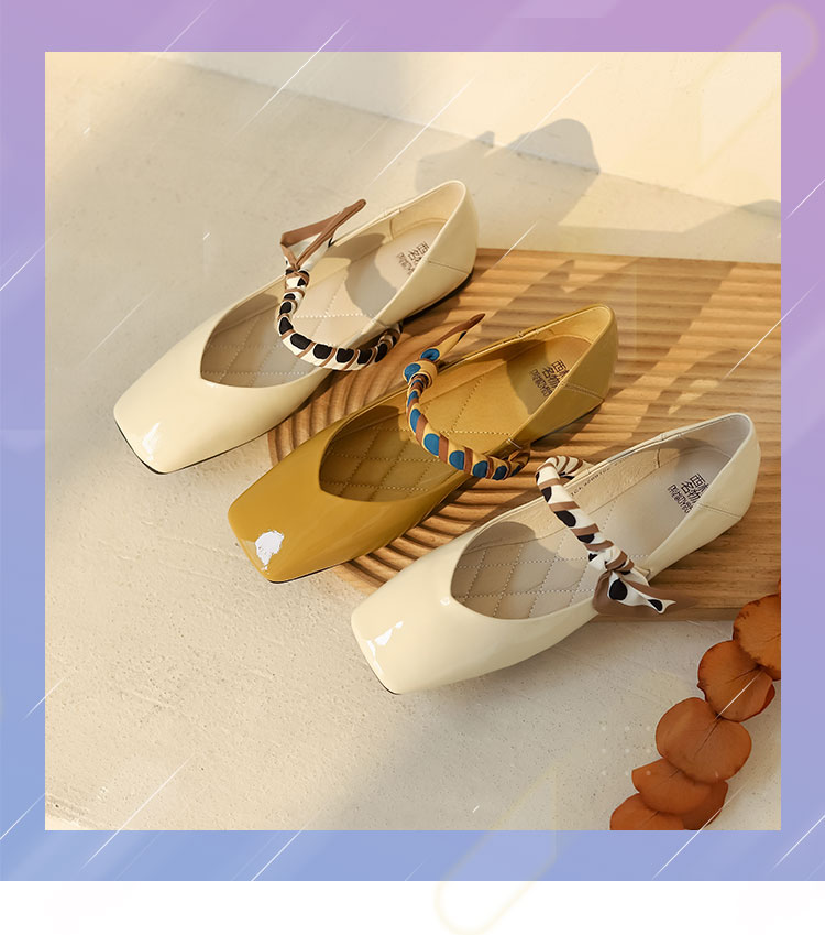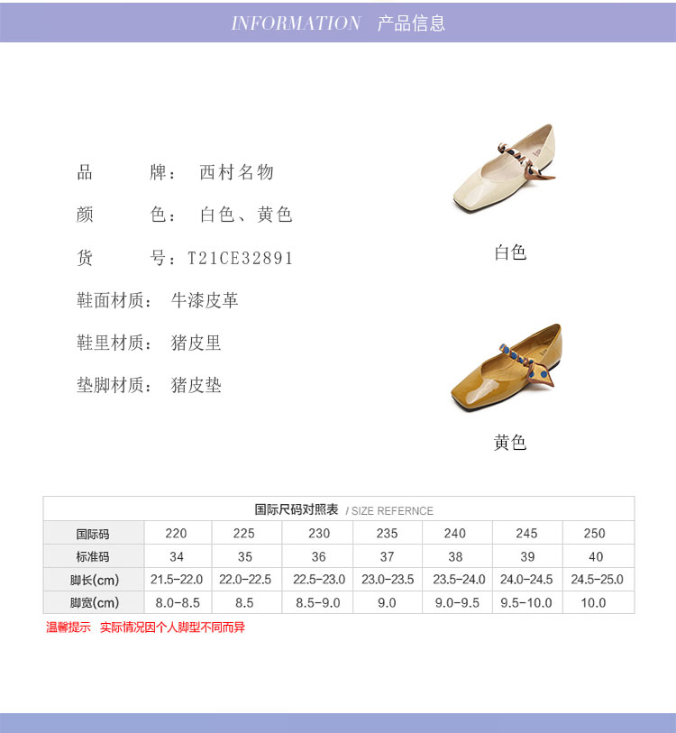 西村名物2021秋季新款玛丽珍浅口女单鞋丝带甜美风V口牛漆皮T21CE32891