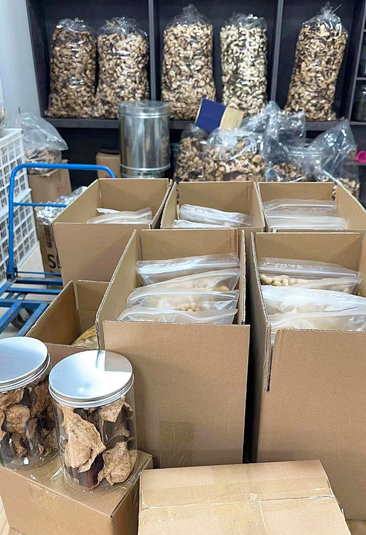 挑去新鲜花生中不达标的“瞎花生”,与陈皮一起煮沸,将花生从料池里吊出烘干后,加入烤制好的陈皮碎(煮过的陈皮只能丢掉)。