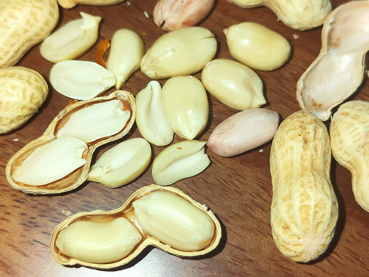 剥开外壳,花生皮呈大地色,是被陈皮料水煮沸形成的颜色;一搓,饱满的“珍珠粒”俏皮地蹦了出来,色泽米白、淡黄。