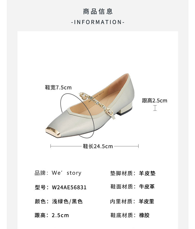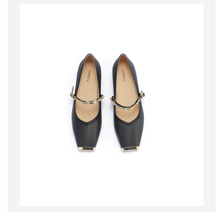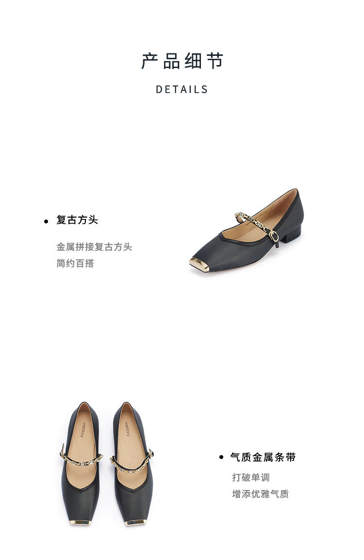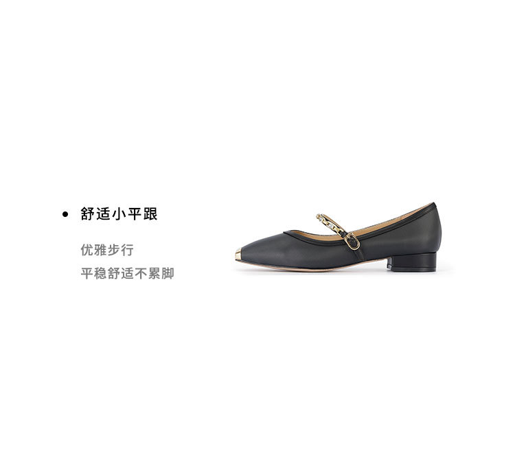 westory春季新款小低跟金属圆头优雅舒适玛丽珍单鞋W24AE56831