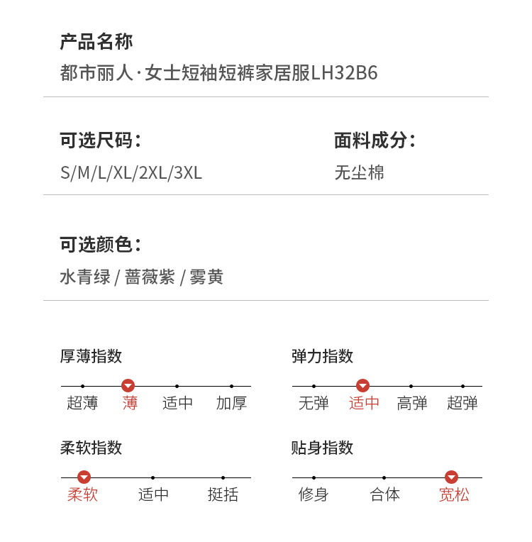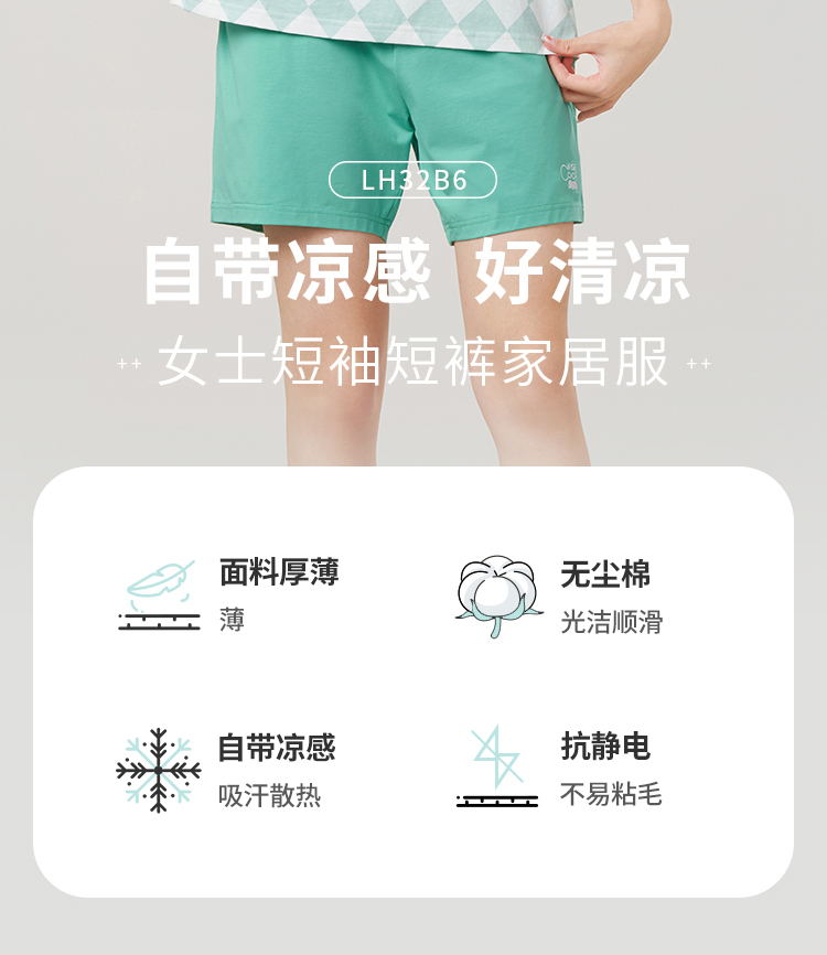 都市丽人凉感无尘棉薄短袖家居服睡衣LH32B6