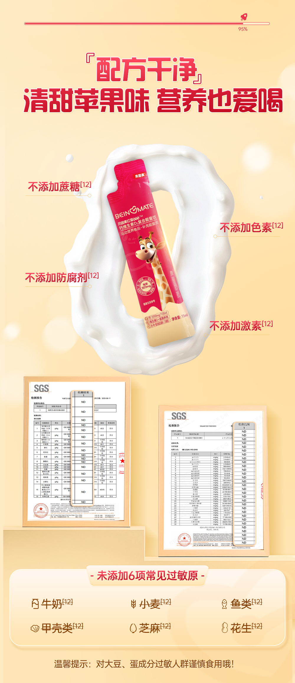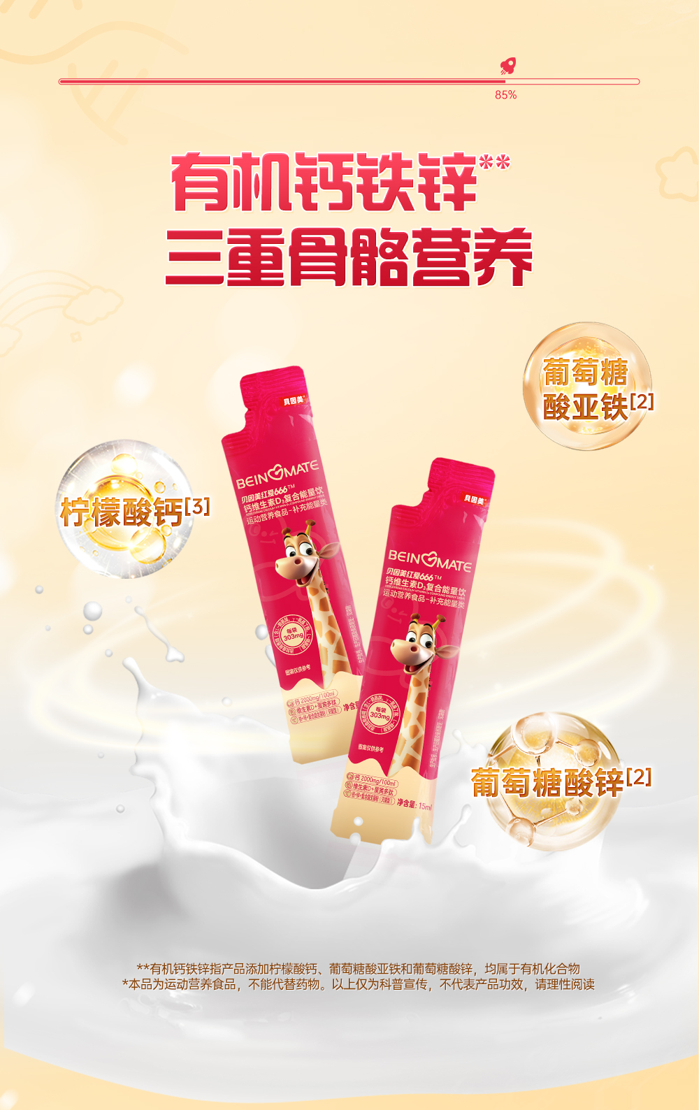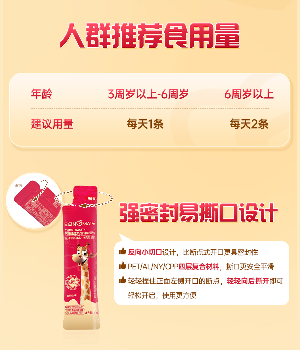 贝因美红爱666 钙维生素D3复合能量饮1盒(15ml*30条)