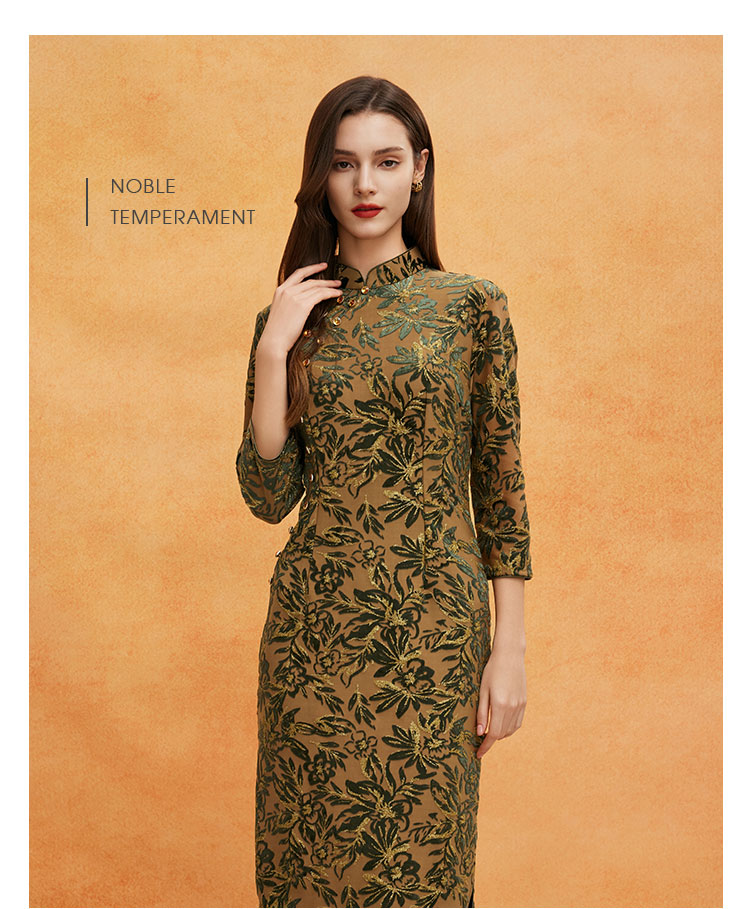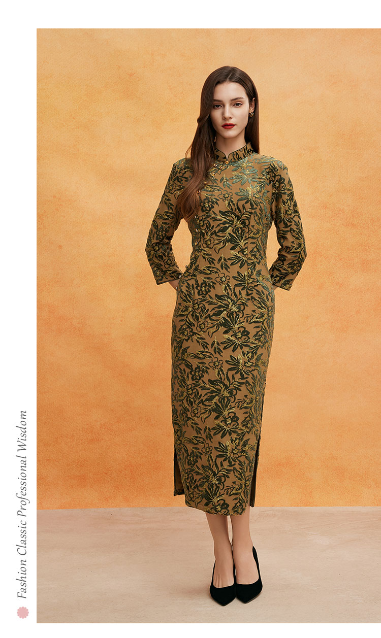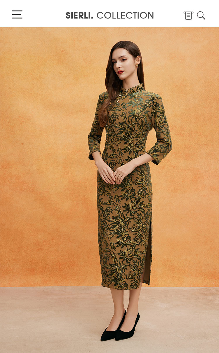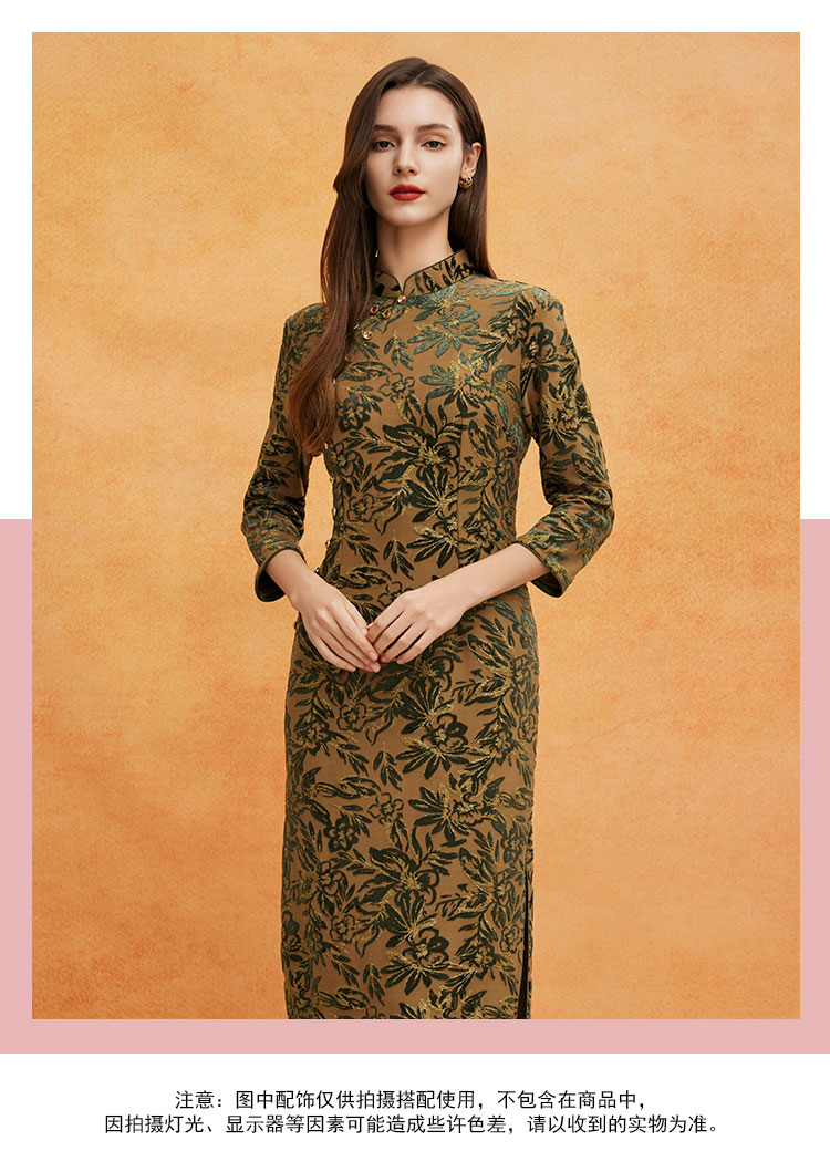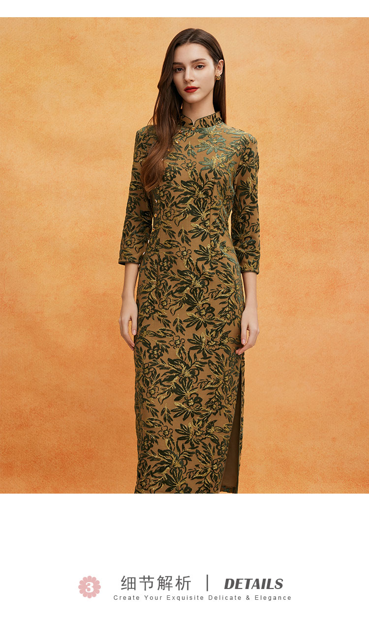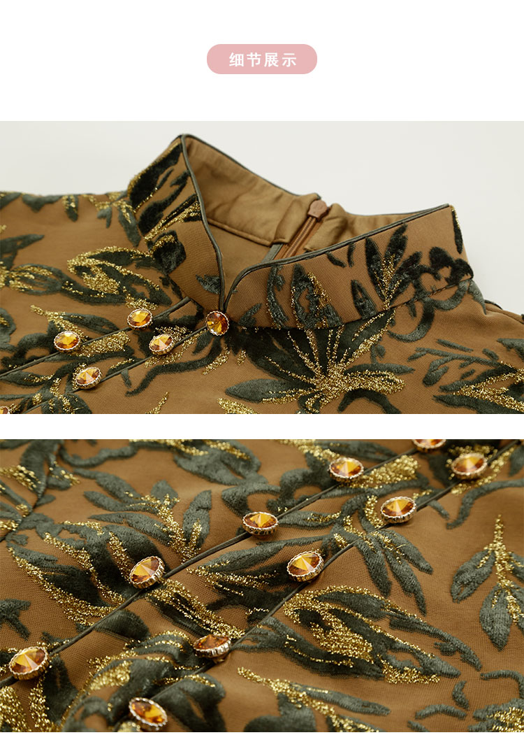 QE804斯尔丽2025春季新中式金丝绒提花华丽喜妈妈端庄气质高雅旗袍裙
