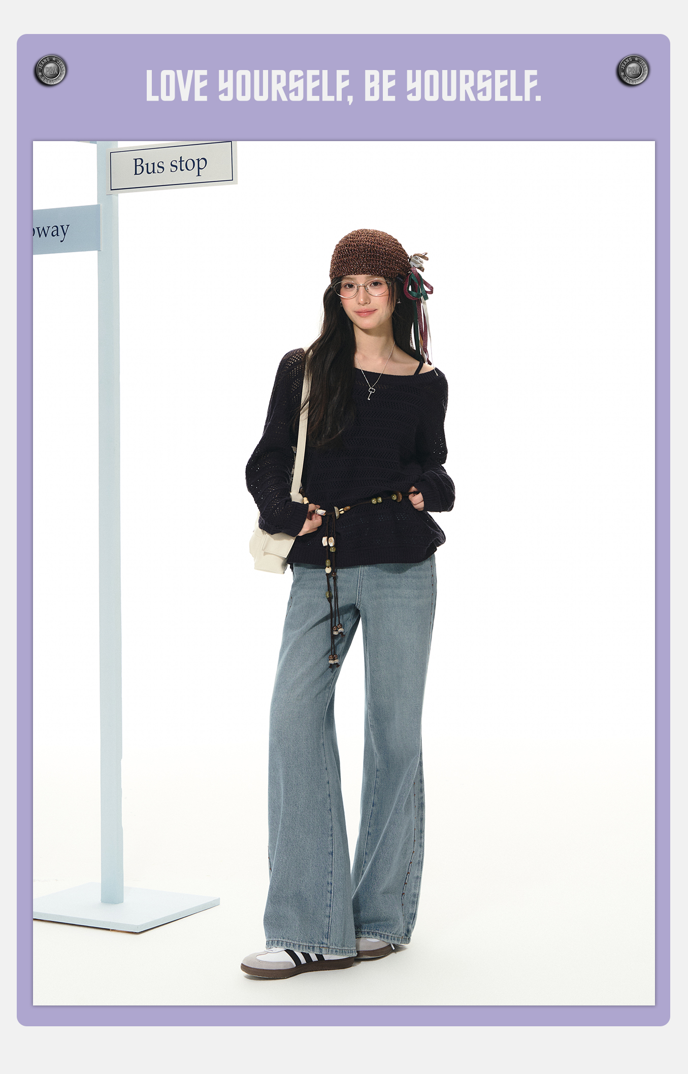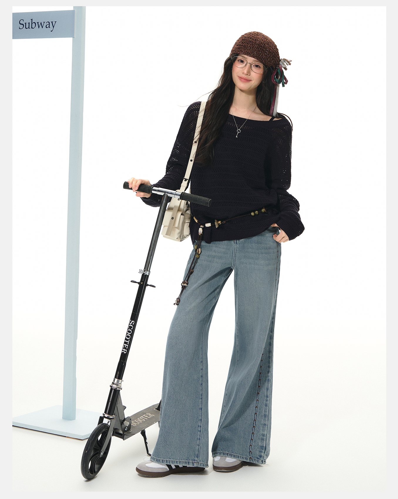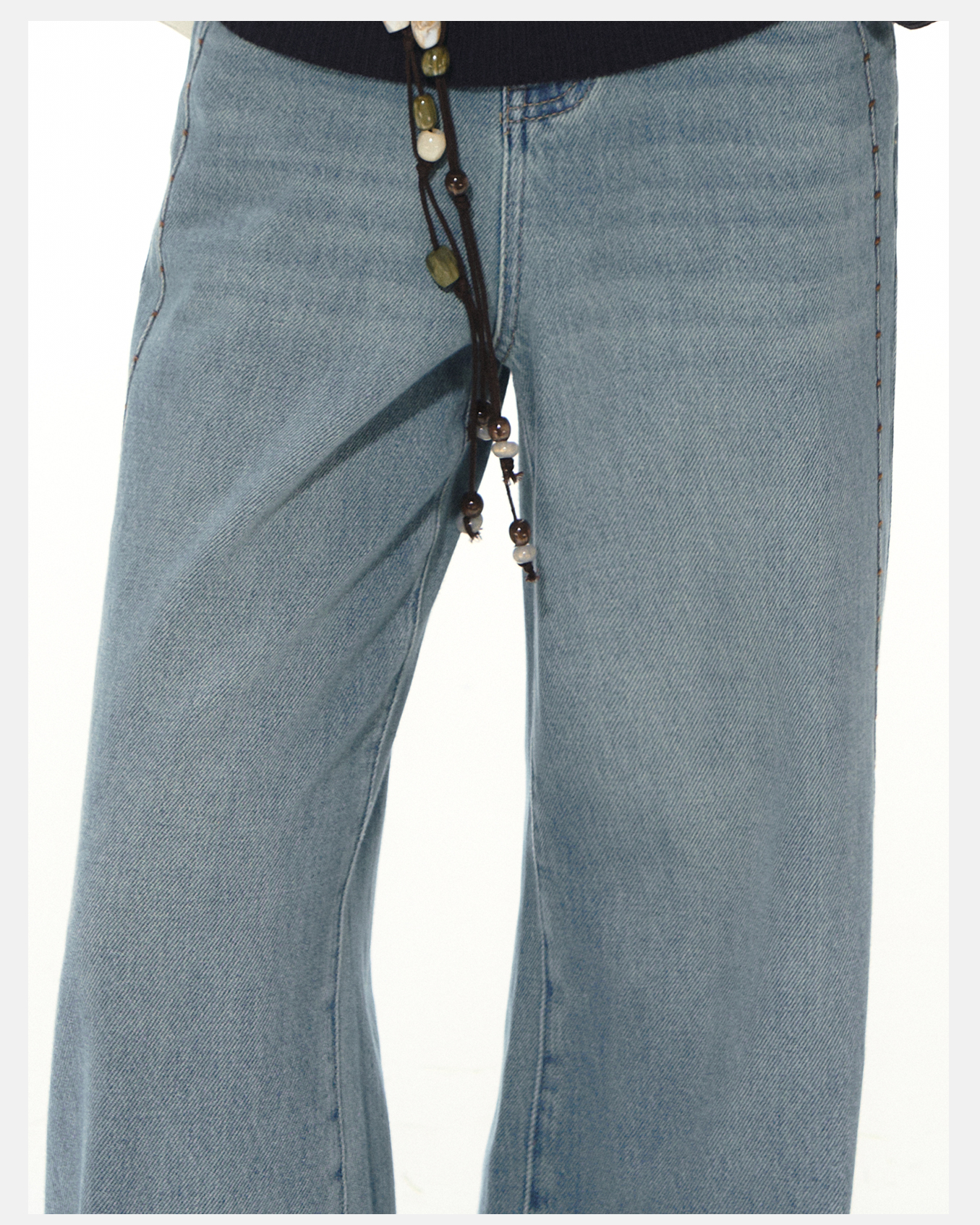 P&X设计师女装2026春季外穿阔腿裤复古牛仔长裤 826110090 蓝色