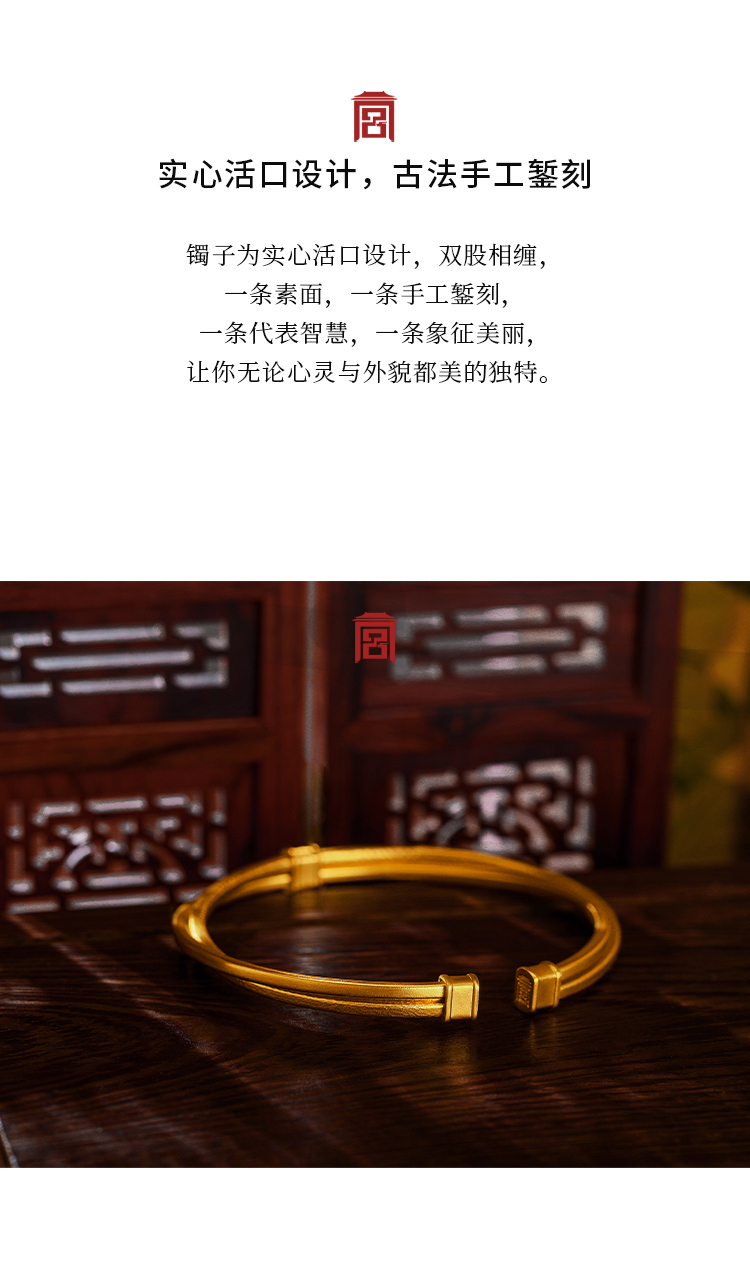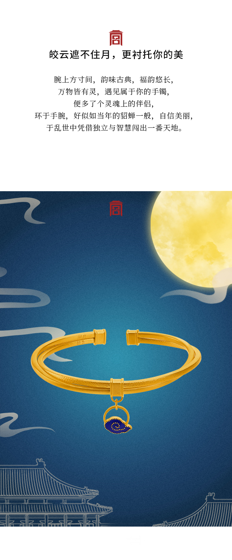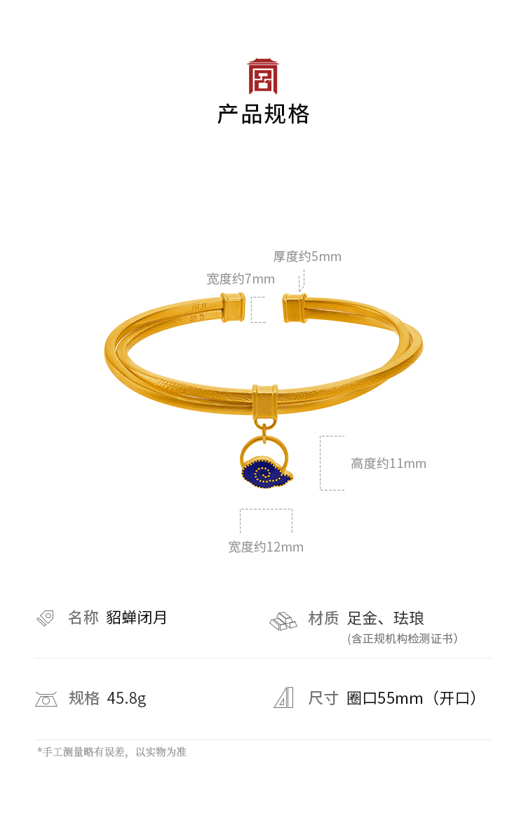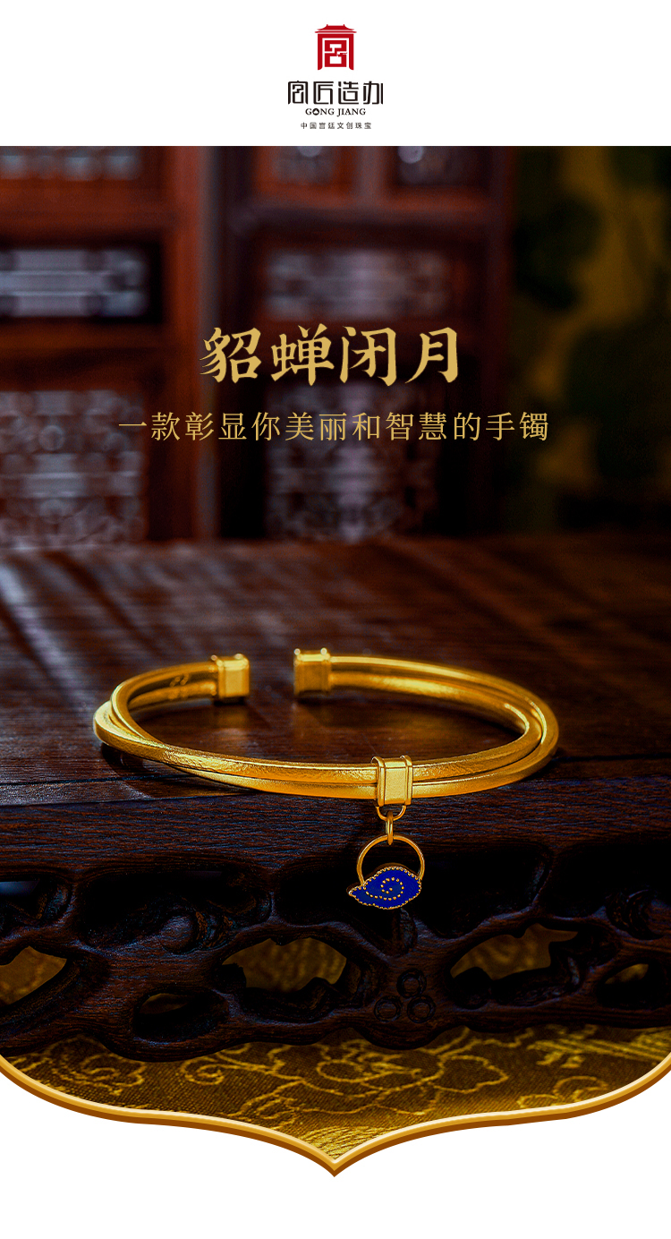 宫匠造办 十朝十美宫镯 魏晋·貂蝉闭月黄金手镯