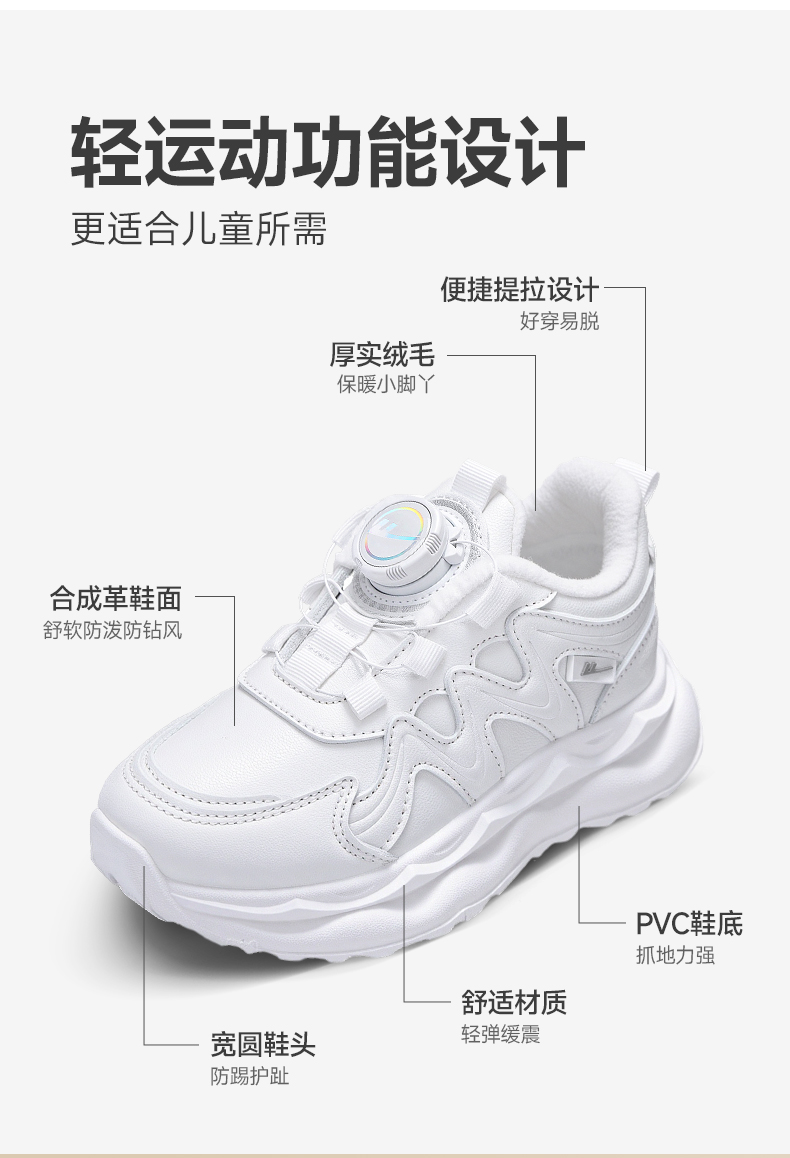 回力童鞋儿童加绒小白鞋子冬季新款男童女童保暖二棉鞋跑步运动鞋