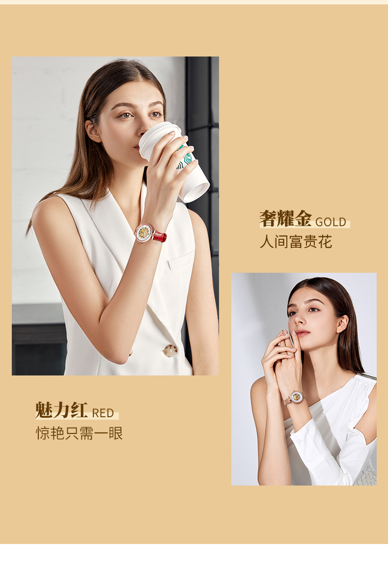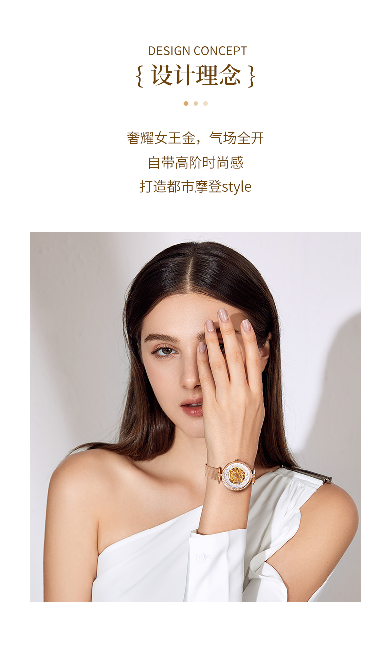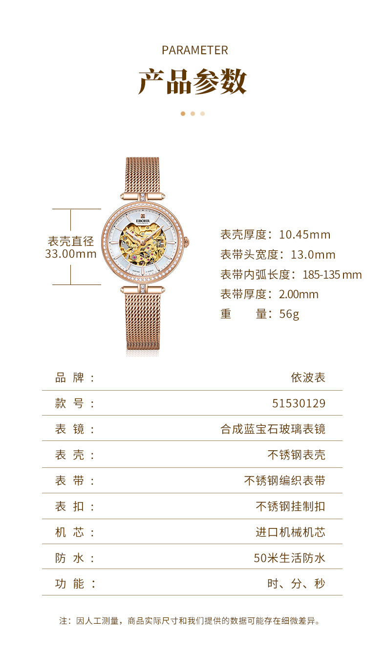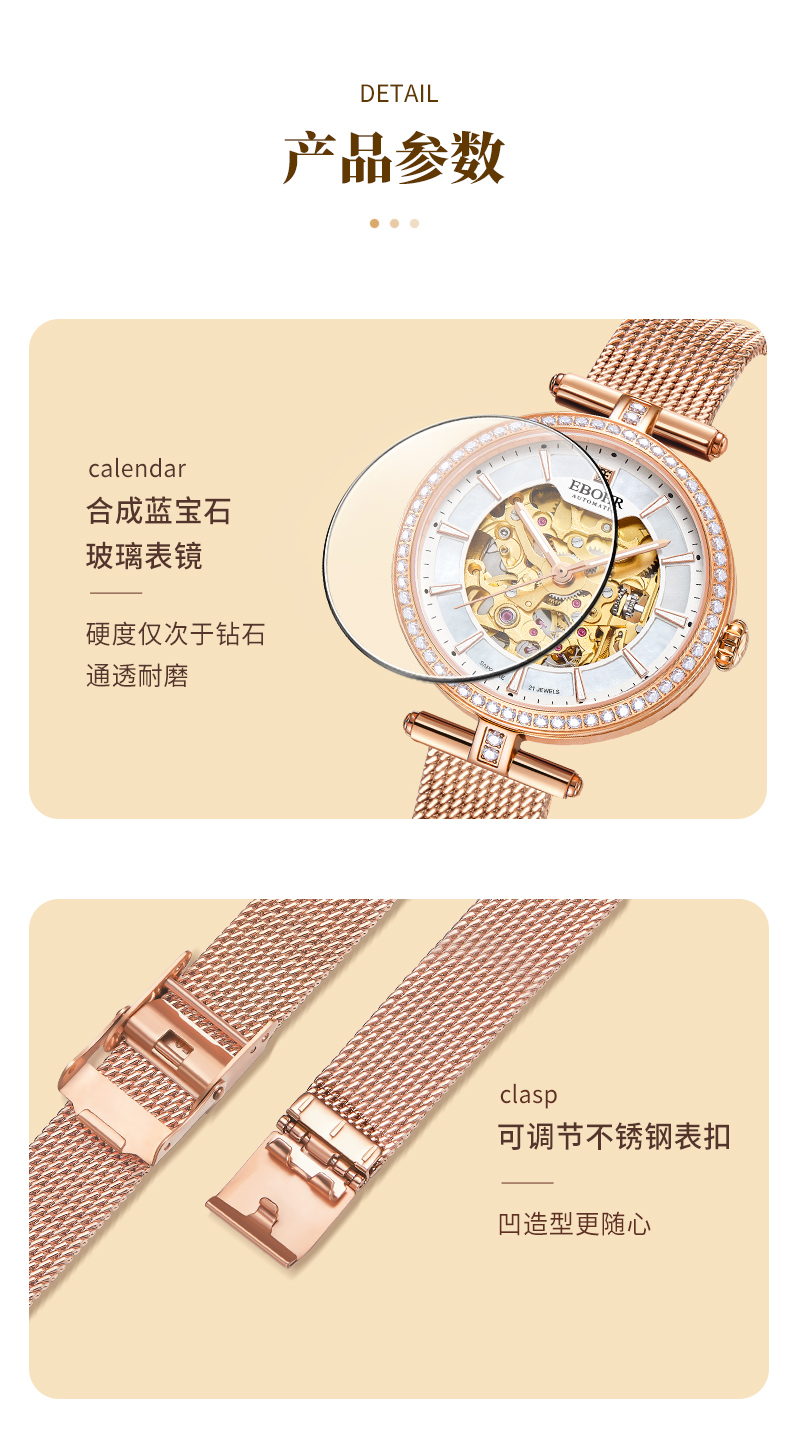 依波(EBOHR)百搭气质流金时尚镂空机械女表5153