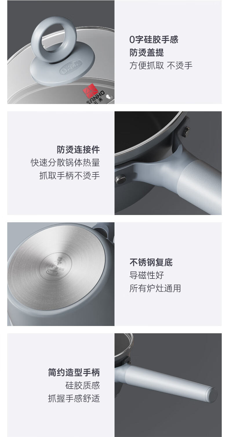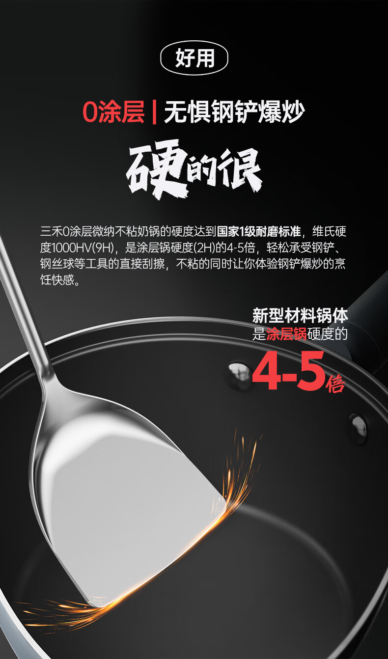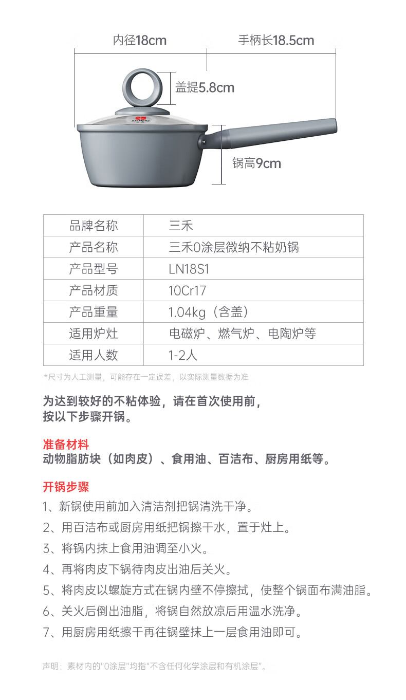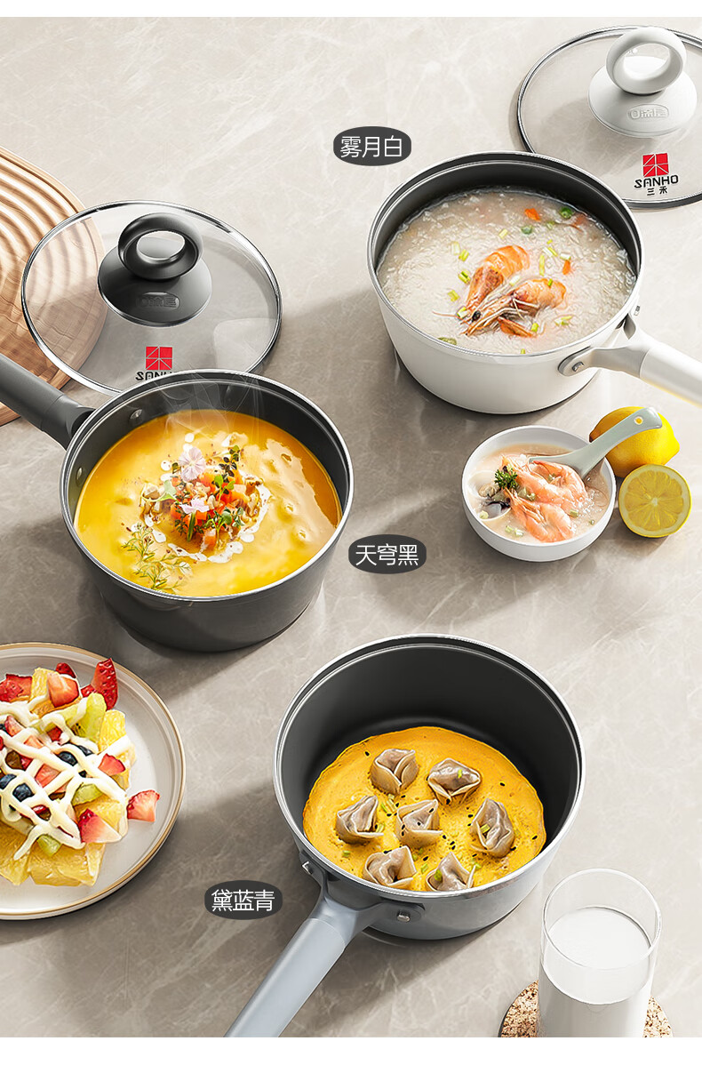三禾0涂层微纳不粘奶锅宝宝辅食锅小奶锅煮奶锅泡面锅18cm_LN18S1
