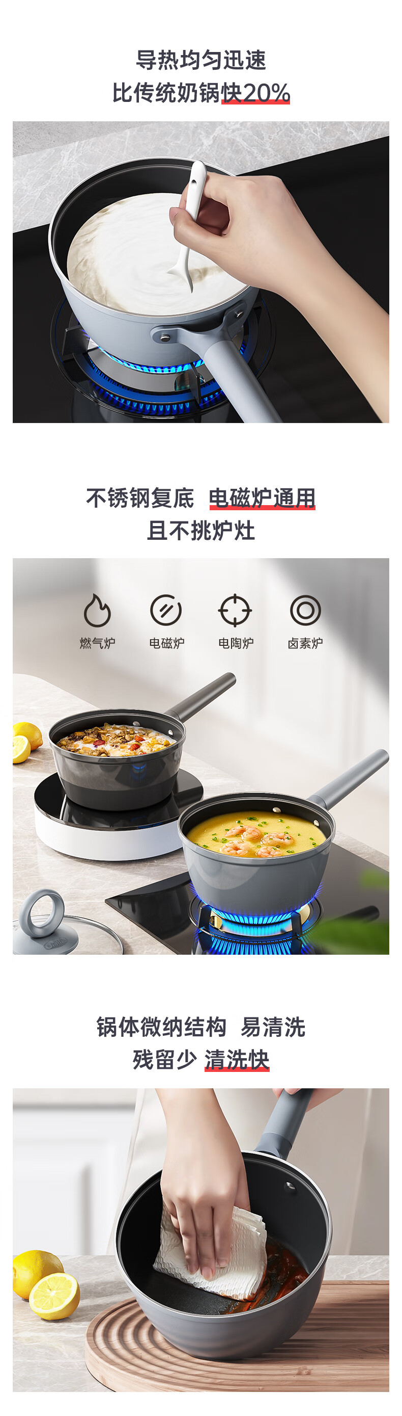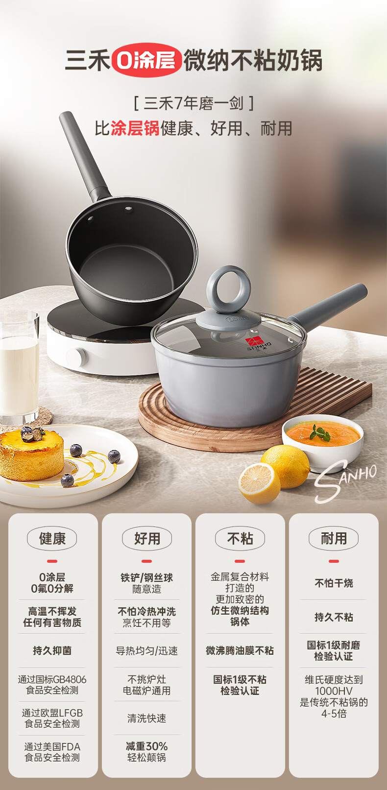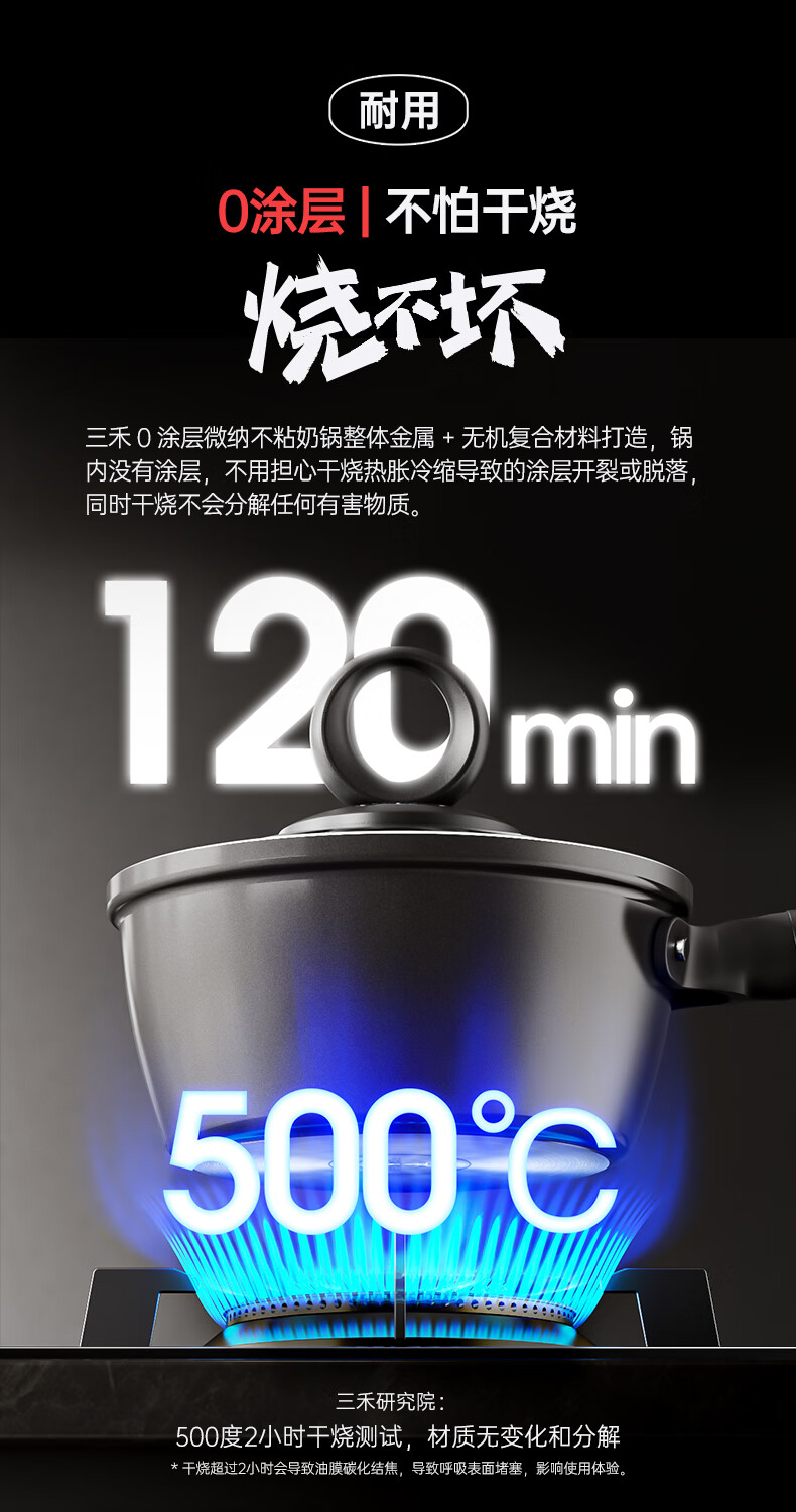 三禾0涂层微纳不粘奶锅宝宝辅食锅小奶锅煮奶锅泡面锅18cm_LN18S1