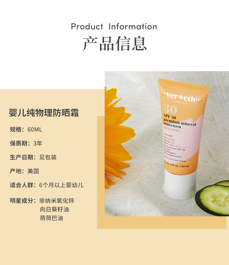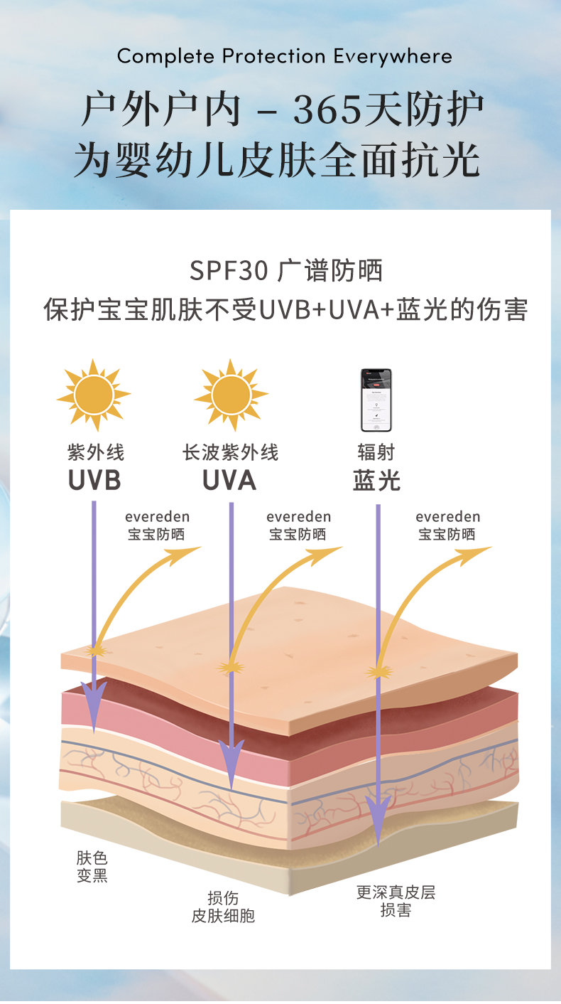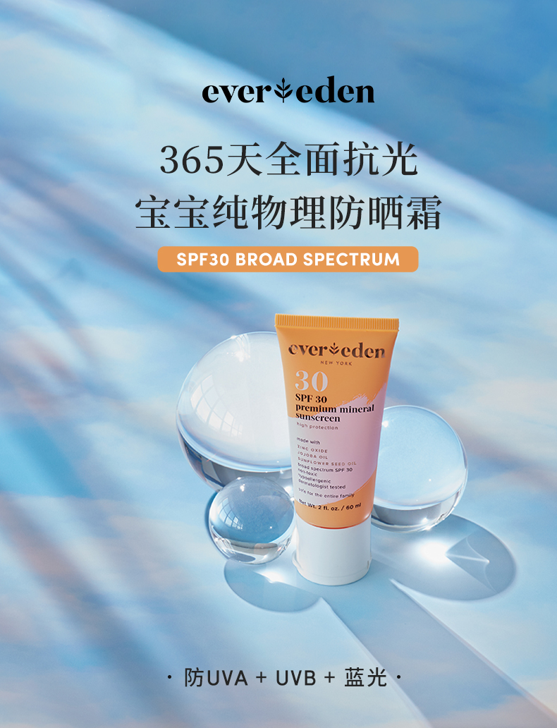 Evereden婴幼儿365天全面抗光纯物理防晒霜SPF3060ml