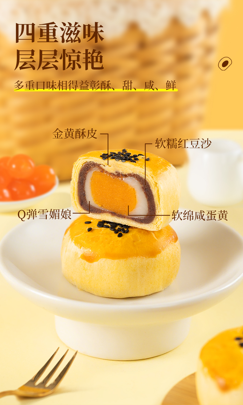 【港荣】咸蛋黄酥金黄酥皮400g 层层酥香 Q弹雪媚娘咸甜搭配口感丰富 入口绵密不腻