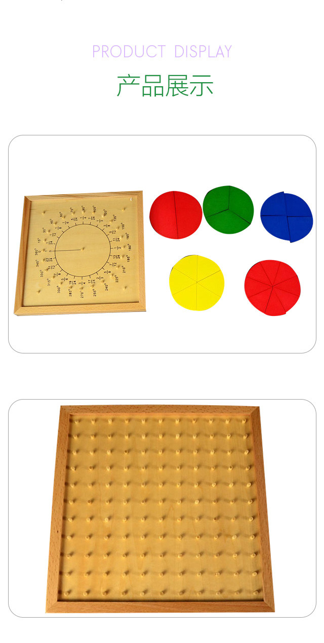 由软性彩色23片圆形分数板、1个双面钉板组成。