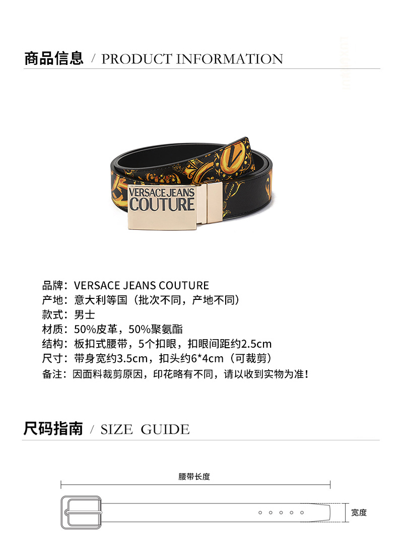 VERSACE JEANS COUTURE/VERSACE JEANS COUTURE 范思哲【21秋冬系列】范思哲 男士皮革/聚氨酯板扣式双面皮带腰带 71YA6F32 ZP056