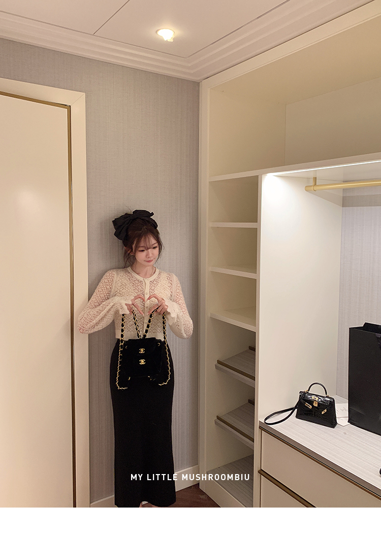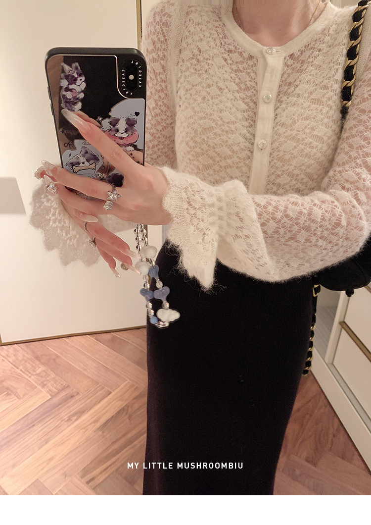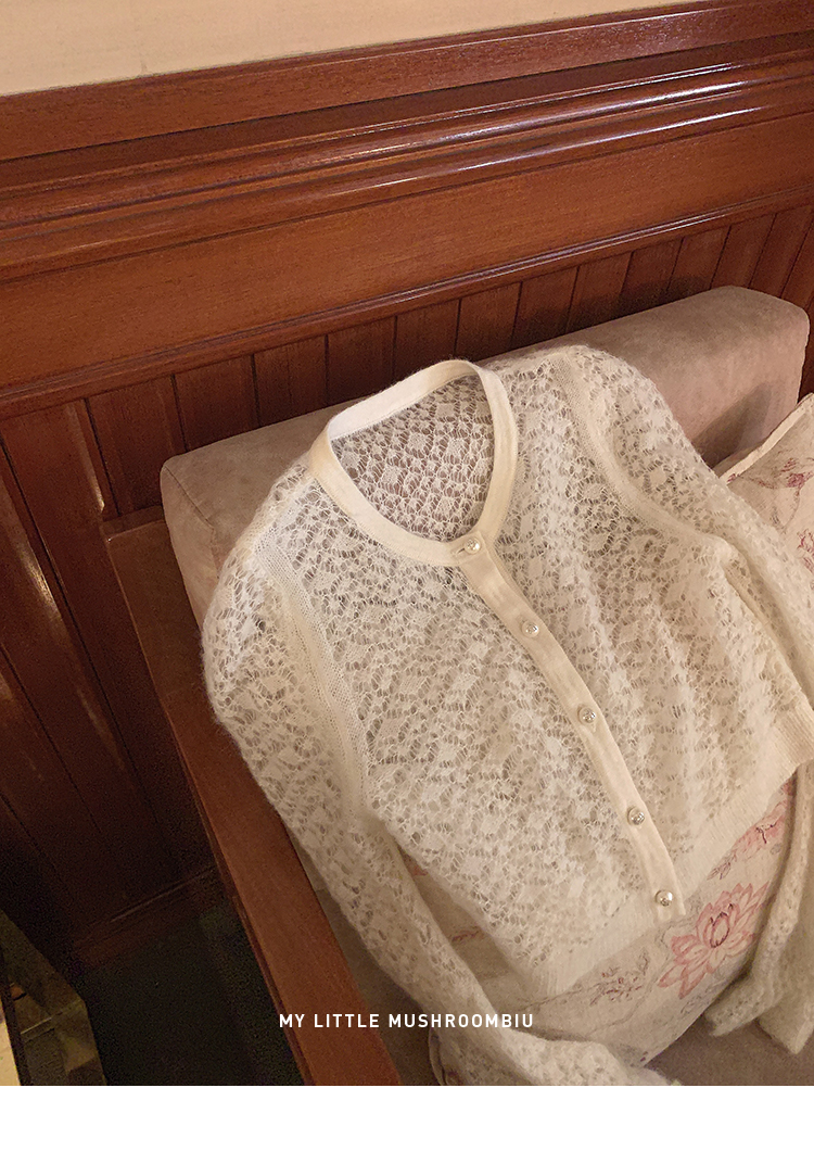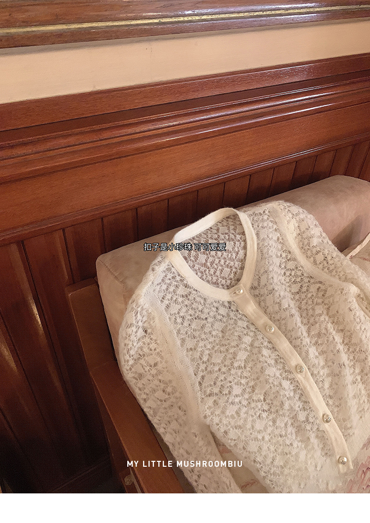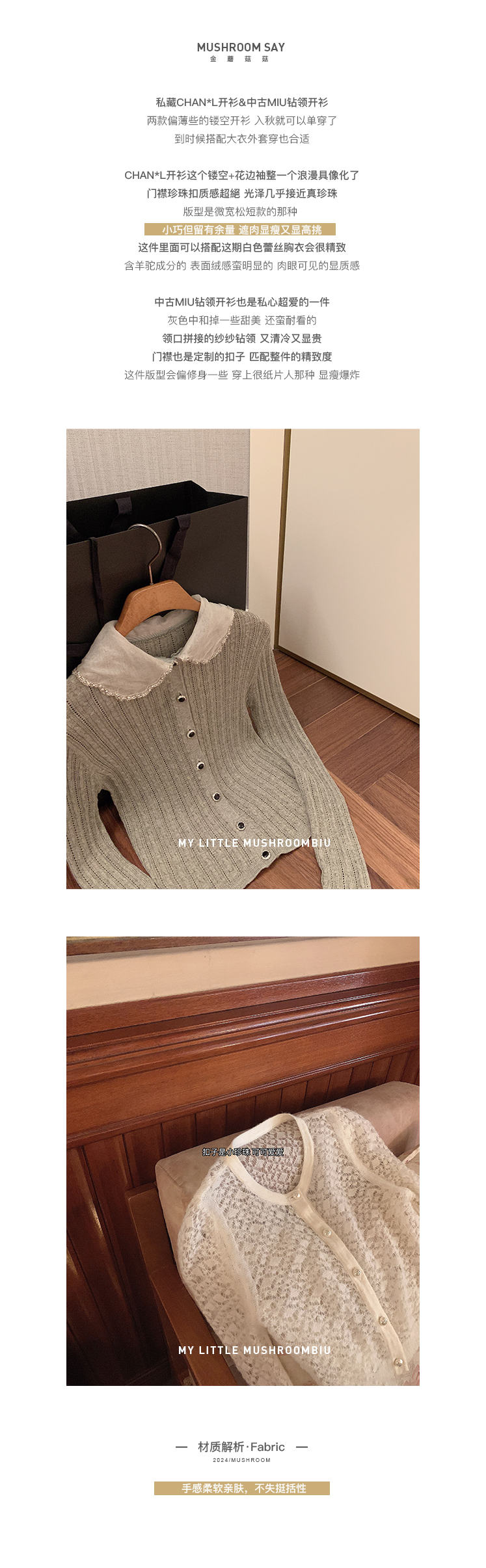 金蘑菇菇 撒娇情话 镂空针织组/chan*l开衫miu钻领开衫