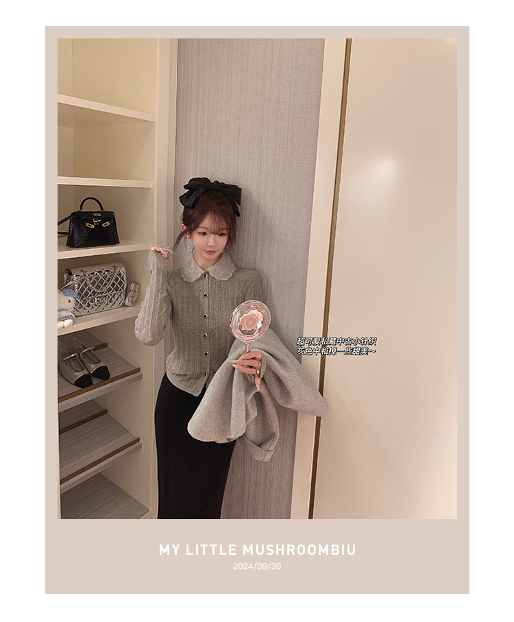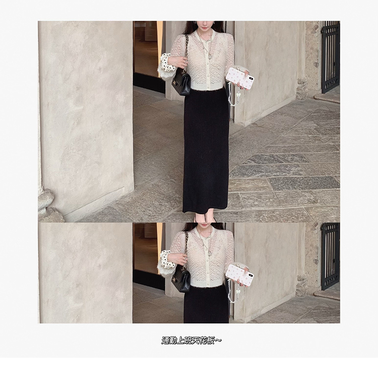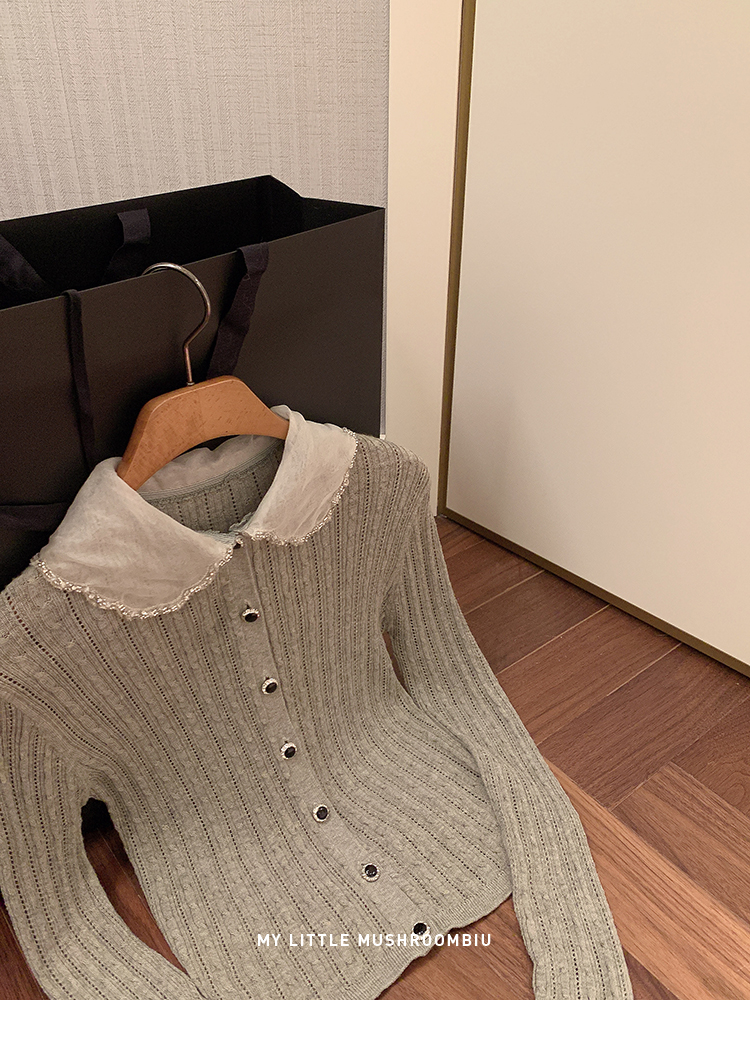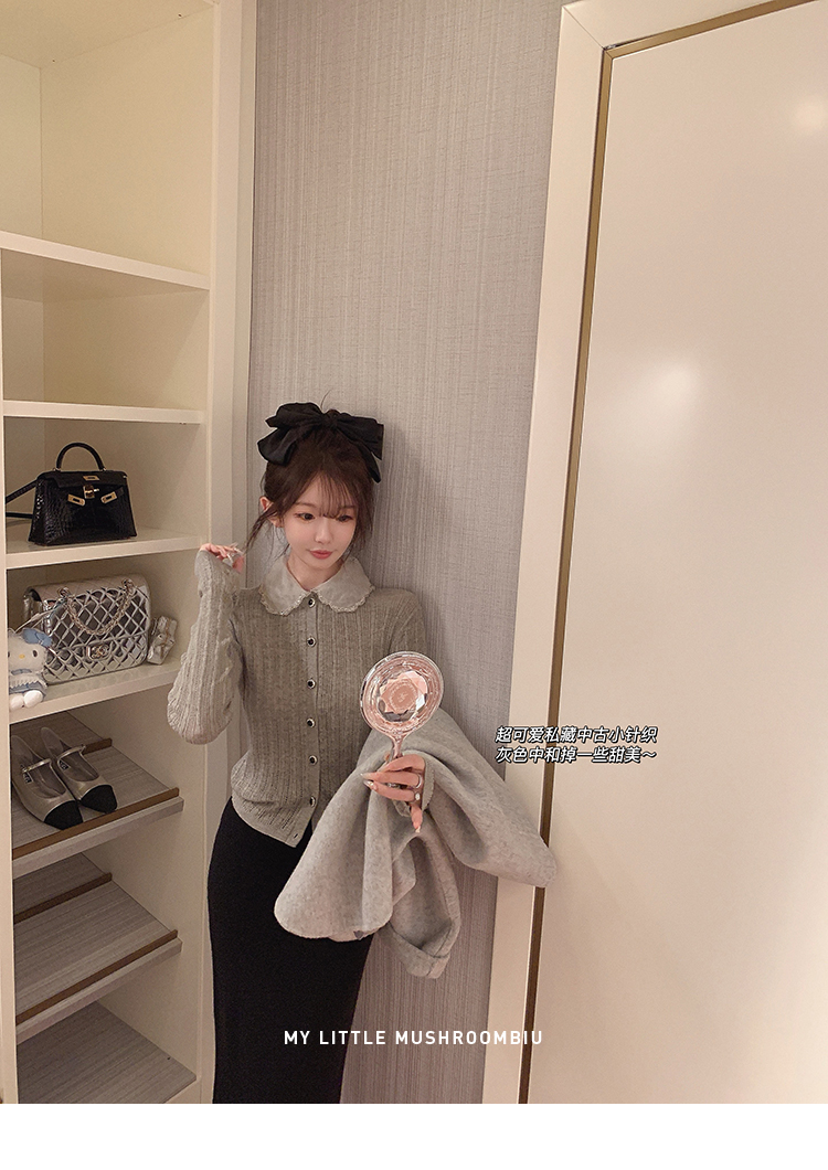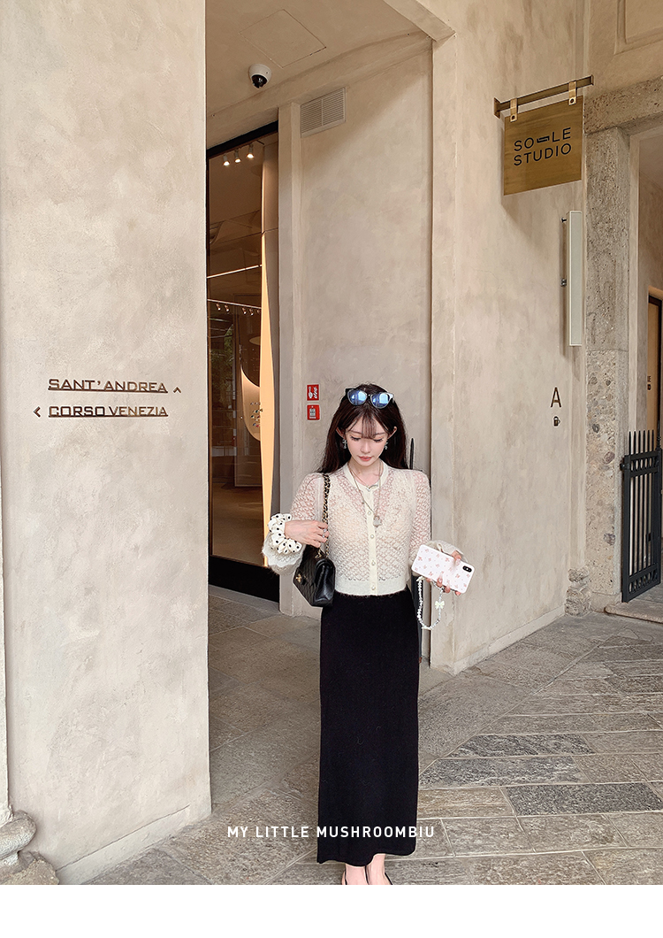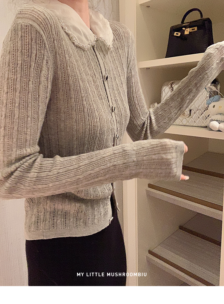 金蘑菇菇 撒娇情话 镂空针织组/chan*l开衫miu钻领开衫