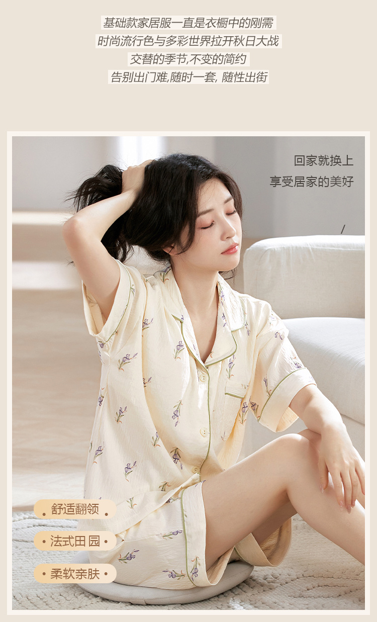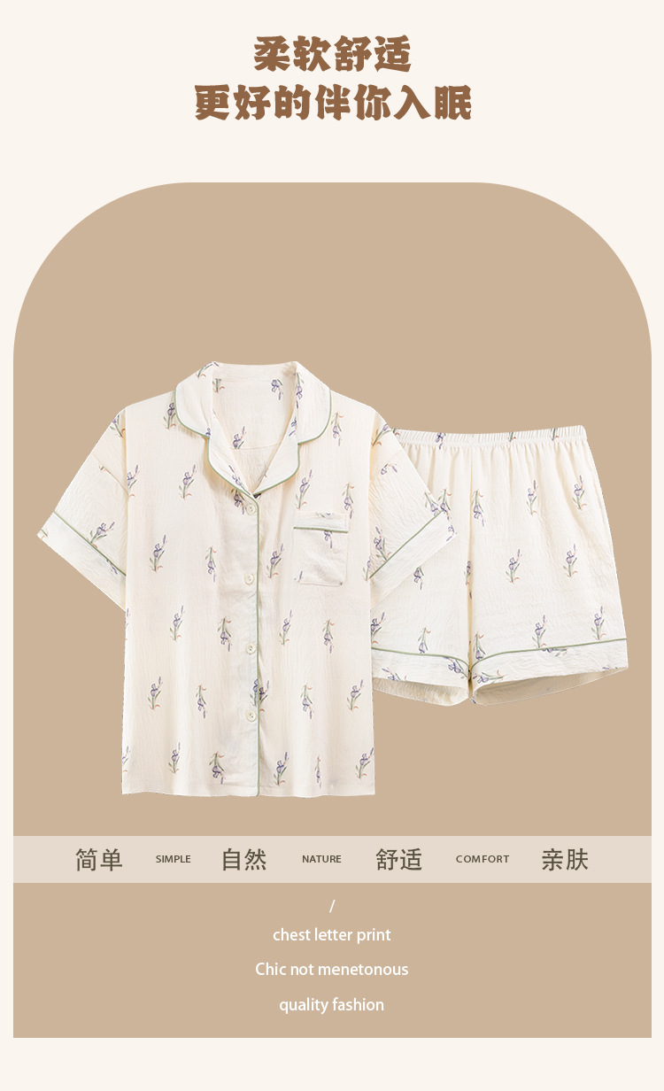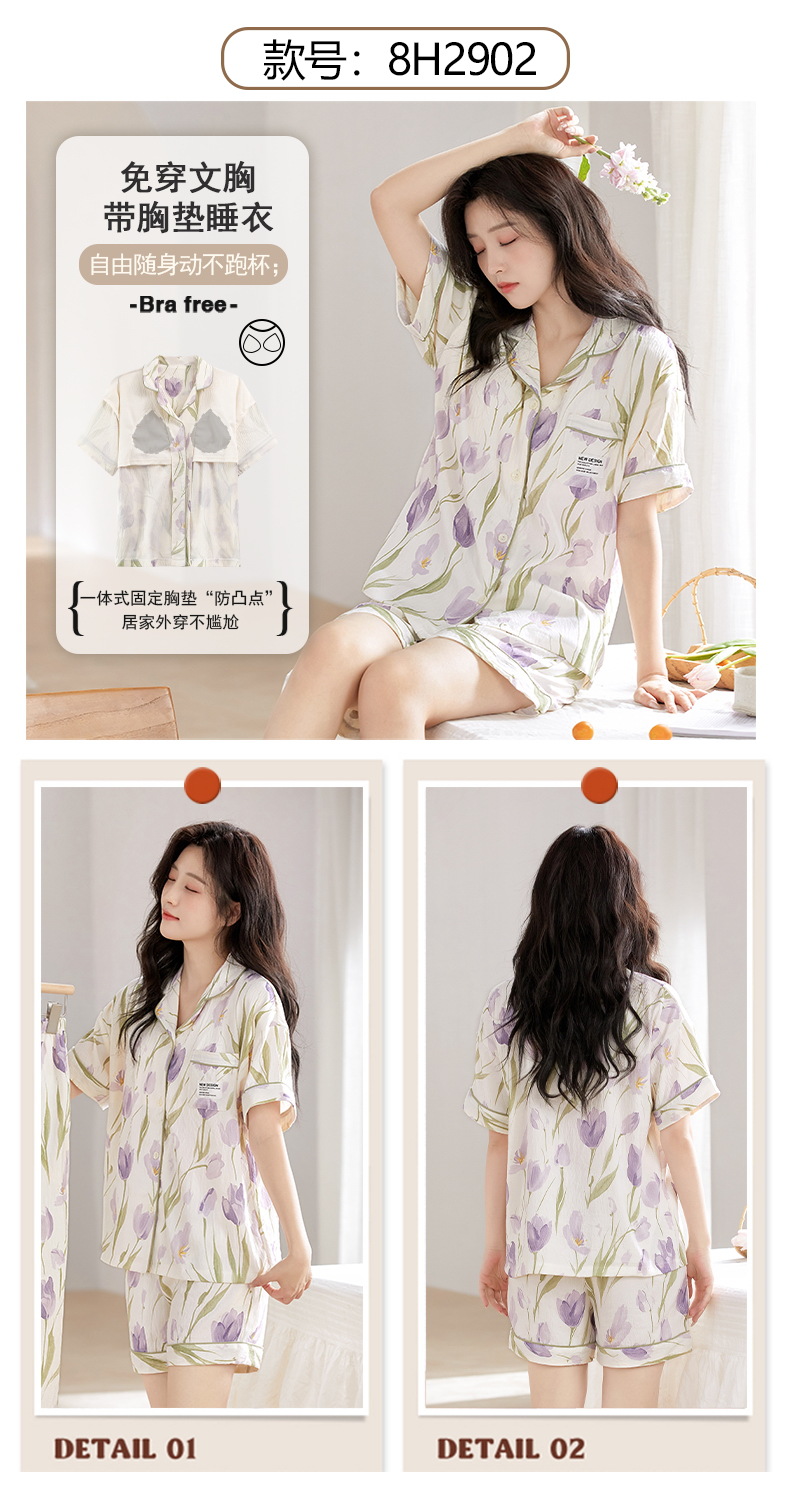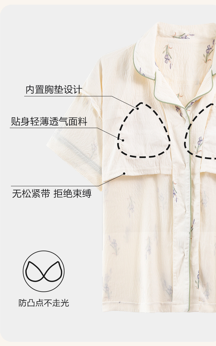 【夏季新款开衫睡衣】云朵棉短袖短裤带胸垫 甜美可爱ins韩版家居服