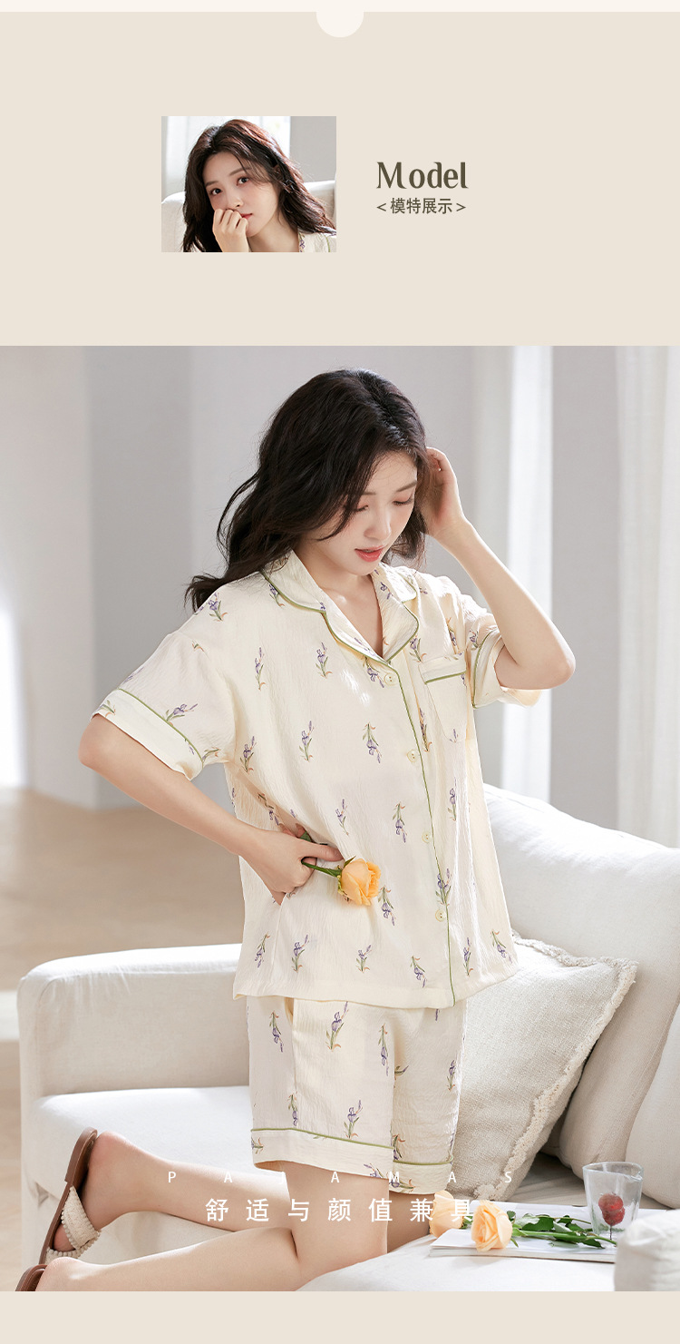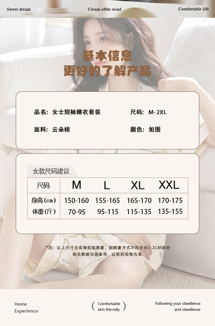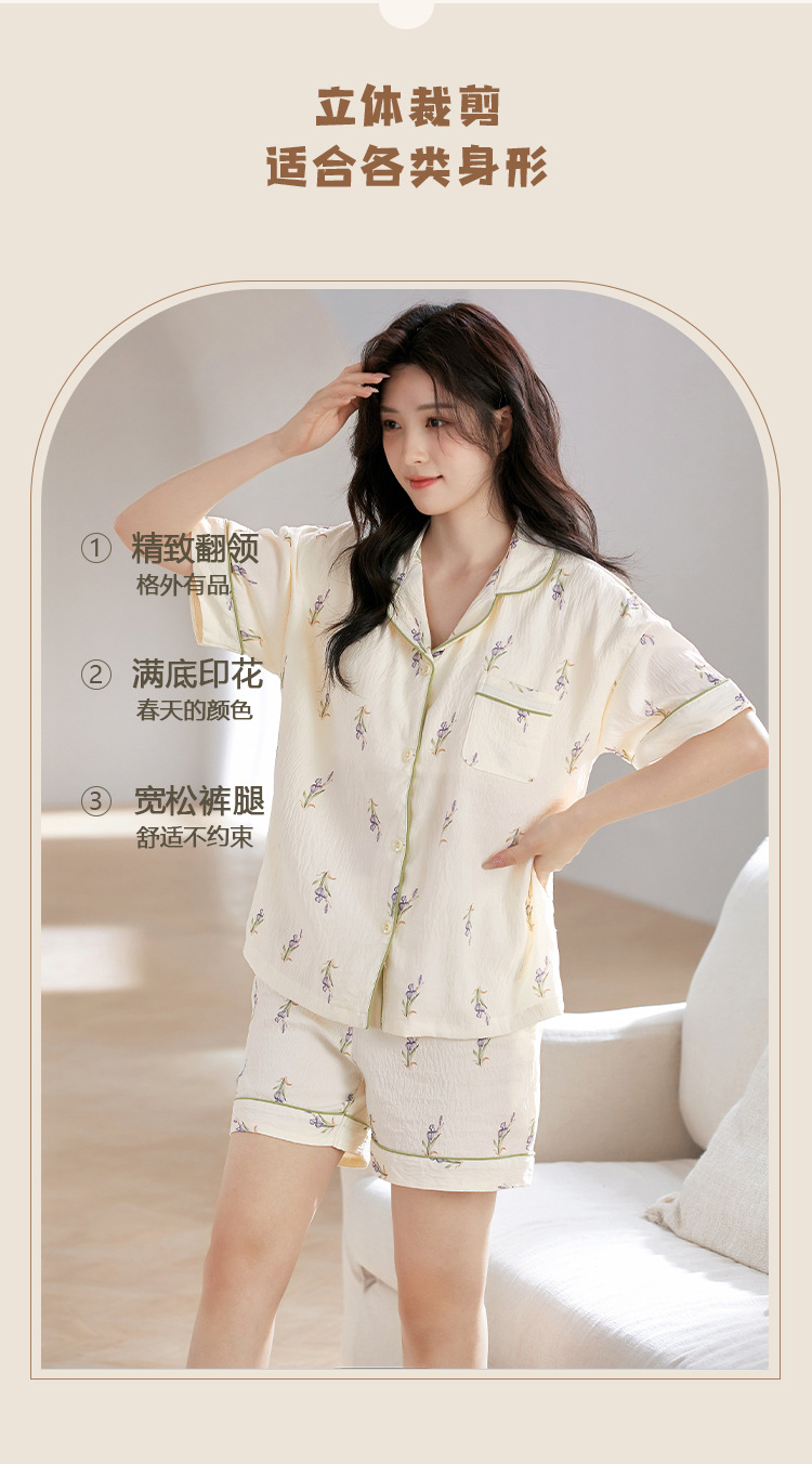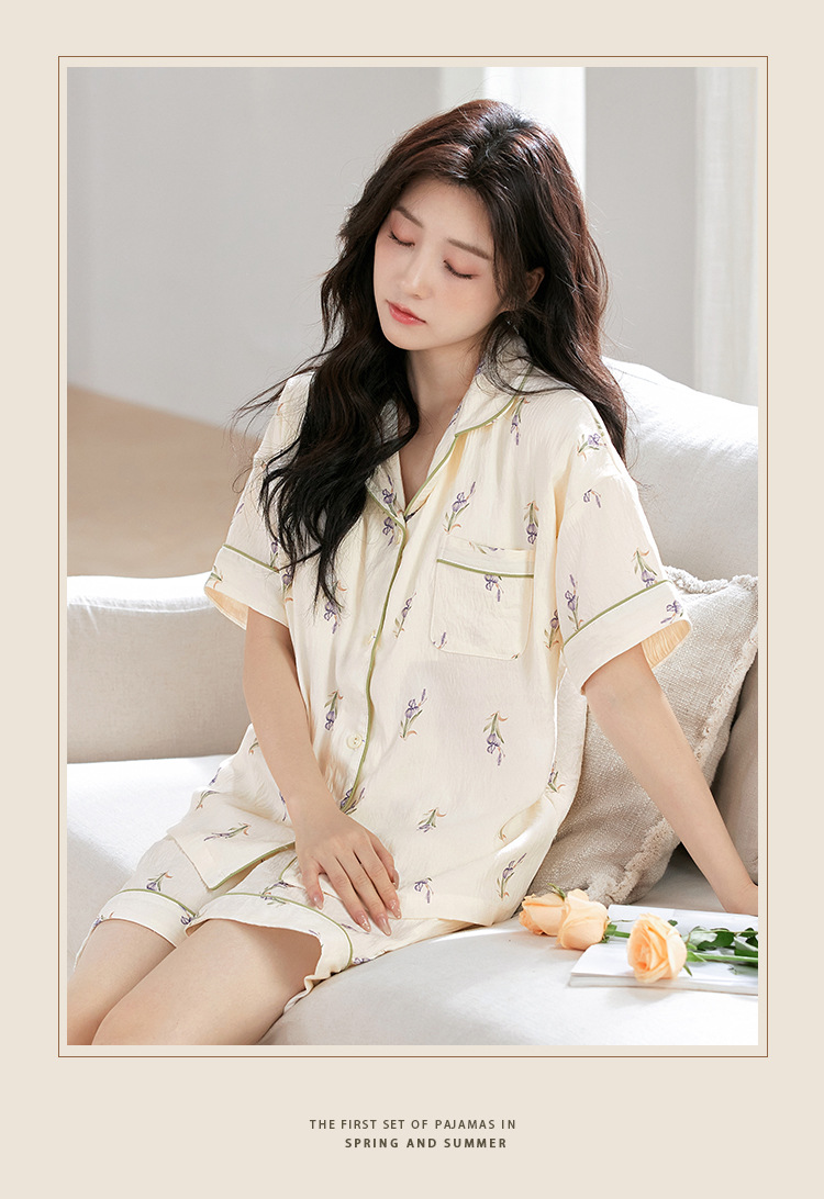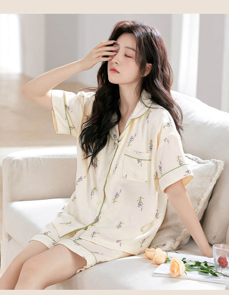 【夏季新款开衫睡衣】云朵棉短袖短裤带胸垫 甜美可爱ins韩版家居服