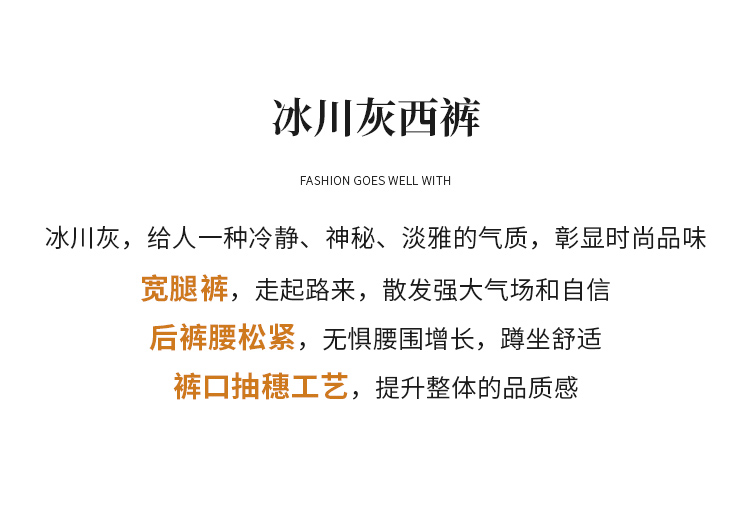 【商场同款】CNT5387 “静奢西裤” 冰川灰 后腰松紧阔腿裤