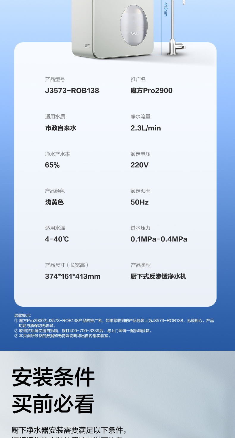 安吉尔魔方Pro2900 净水器家用RO反渗透